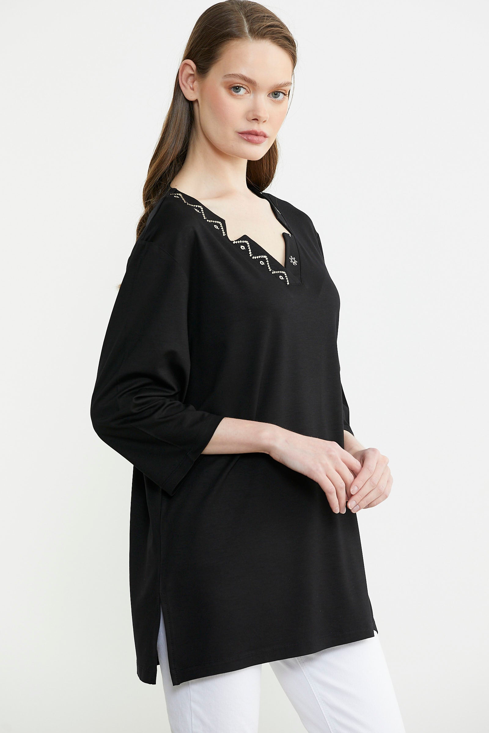 Kadınların, giymek üzere seçtiği ürünler elbette nerede giyecekleri ve nasıl görünmek istediklerine göre şekilleniyor. Özellikle geceleri bir yemek, davet yahut toplantı için tercih edilen giysiler için daha fazla özen gösteriliyor. Ancak kimi aman ani gelişen durumlar için yeterli hazırlık yapacak zaman bulunamıyor. Bu gibi durumlar da gece hayatının şık çizgiler gerektiren kombinlerini yine tişörtlerle oluşturabilirsiniz. Sementa’nın işlemeli kadın tişört modelleri ile tül detaylı bluzleri harika alternatifler olarak karşınıza çıkıyor. Dilerseniz ürün seçeneklerimiz arasında yer alan fermuarlı kadın tişört tasarımlarını da değerlendirebilirsiniz.