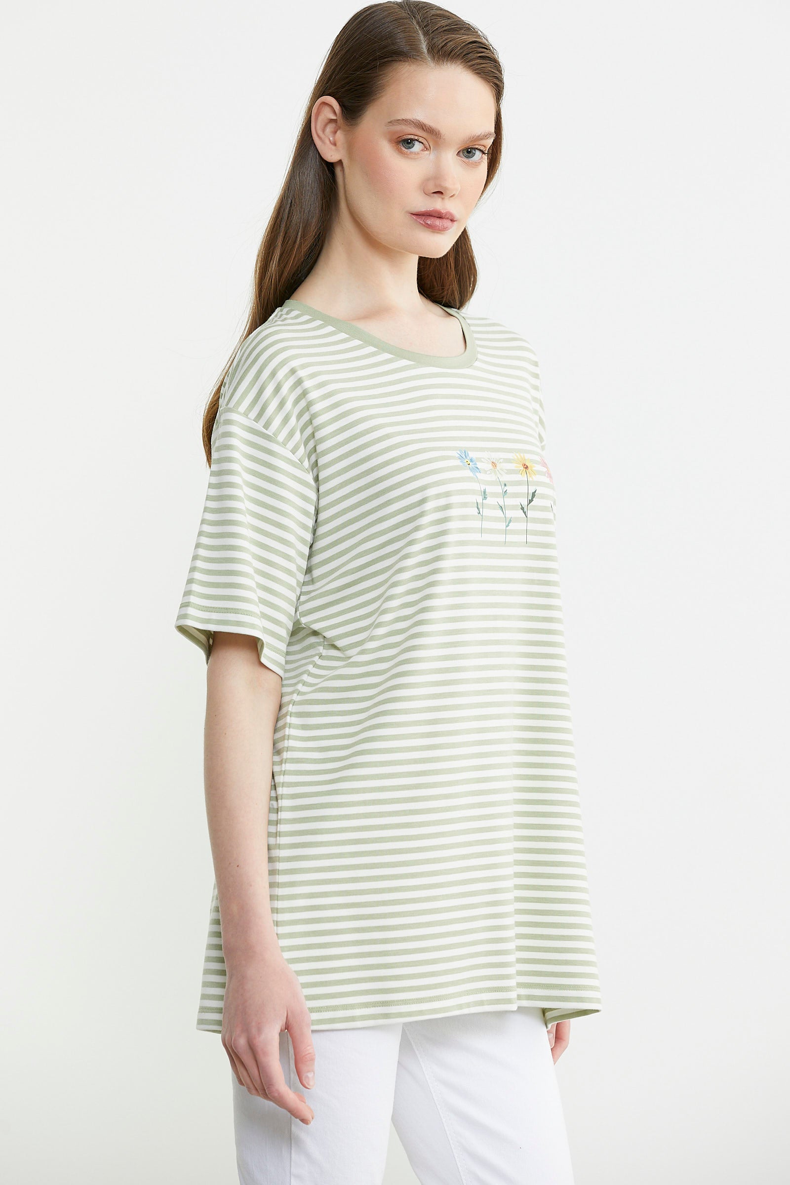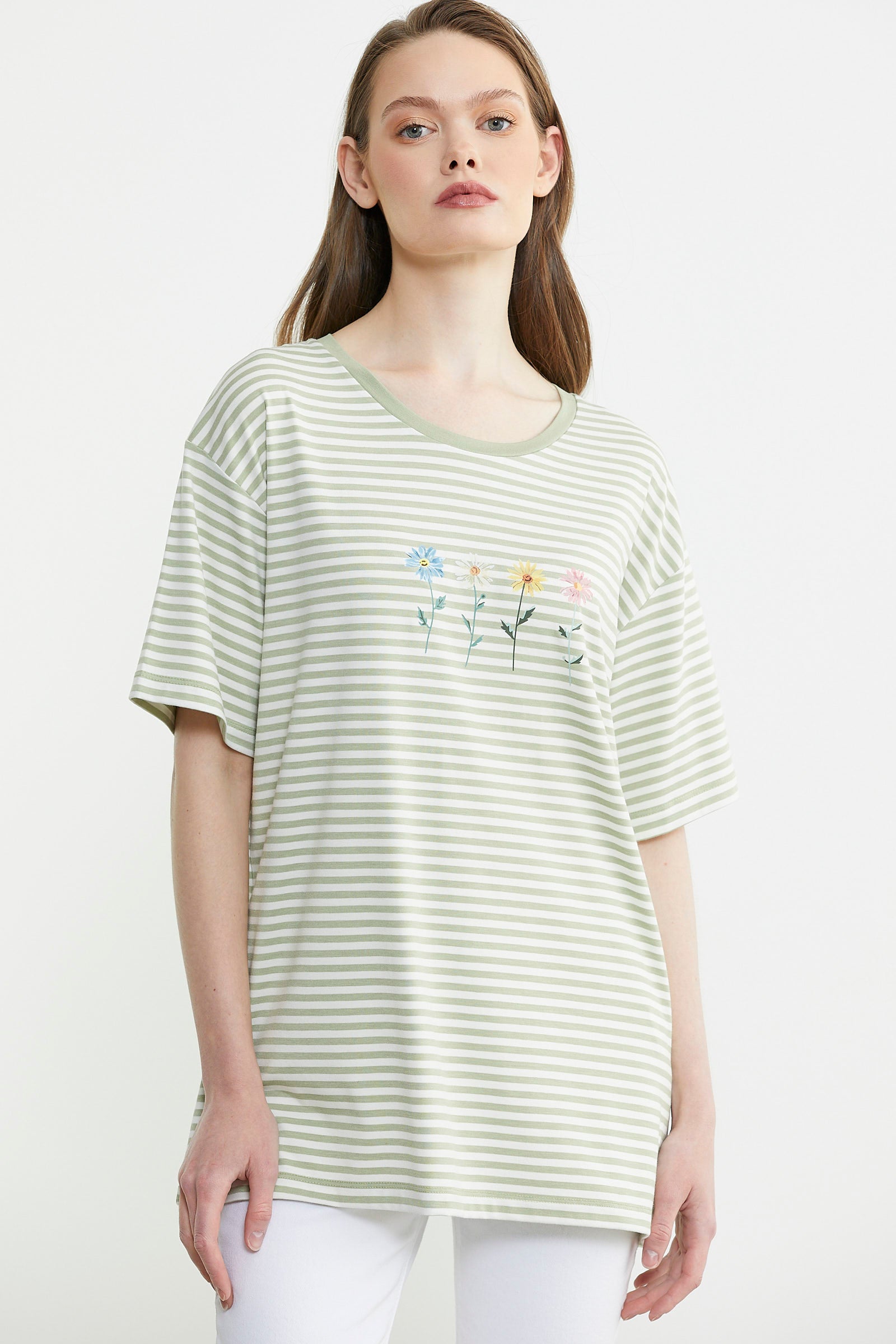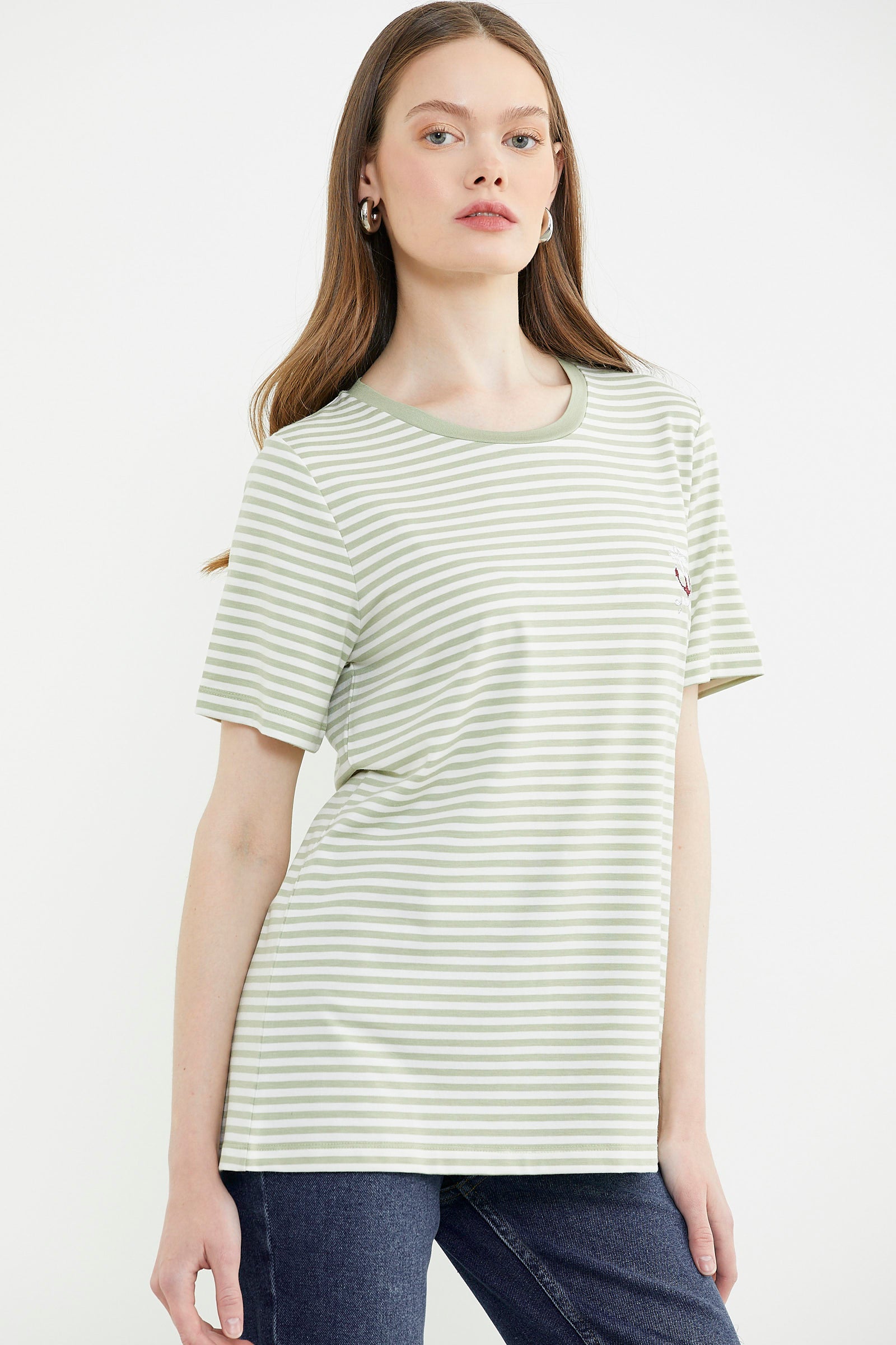 Çizgili desenlere sahip kadın tişört seçenekleri kategorimizde bulabileceğiniz ürünlerden bir diğeridir. Çizgilerin tüm tişört boyunca devam ettiği seçeneklerin yanı sıra ceplerde, yaka çevresinde, kollarda gibi spesifik bölgelerde çizgilerin yer aldığı alternatifler de mevcuttur. Sportif bir tarzdan çok şık tasarımlara sahip ürünler arayanlar leopar gibi farklı desenlere sahip ürünlerimize göz atabilir. Sayfamızdaki ürünleri incelerken fiyat aralıkları ve tişörtlere özel indirimler hakkında bilgi sahibi olabilirsiniz. Kaliteli kumaş yapısı sayesinde ve canlı renkleri sayesinde uzun ömürlü bir giyim süreci sağlayan kıyafetleri hemen satın alabilirsiniz. Zamansız tasarımları sayesinde kombinlerinizin bir parçası olmaya devam edecek tişörtlere ulaşabilirsiniz.
