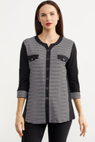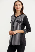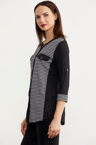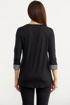 Truvakar Kol Cep Detaylı Çizgili Tişört - Siyah