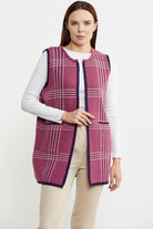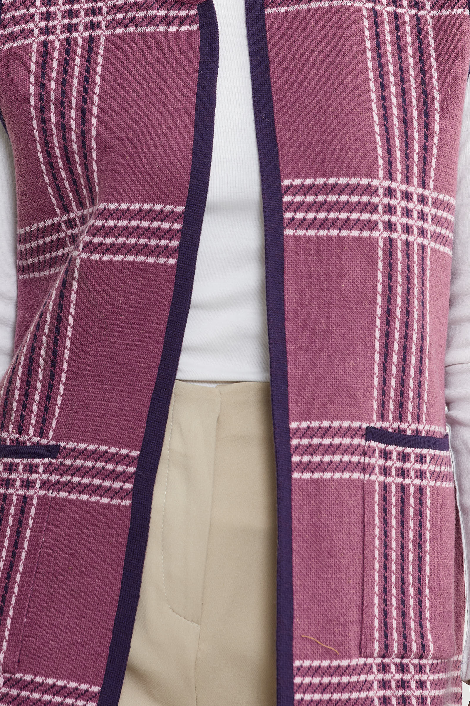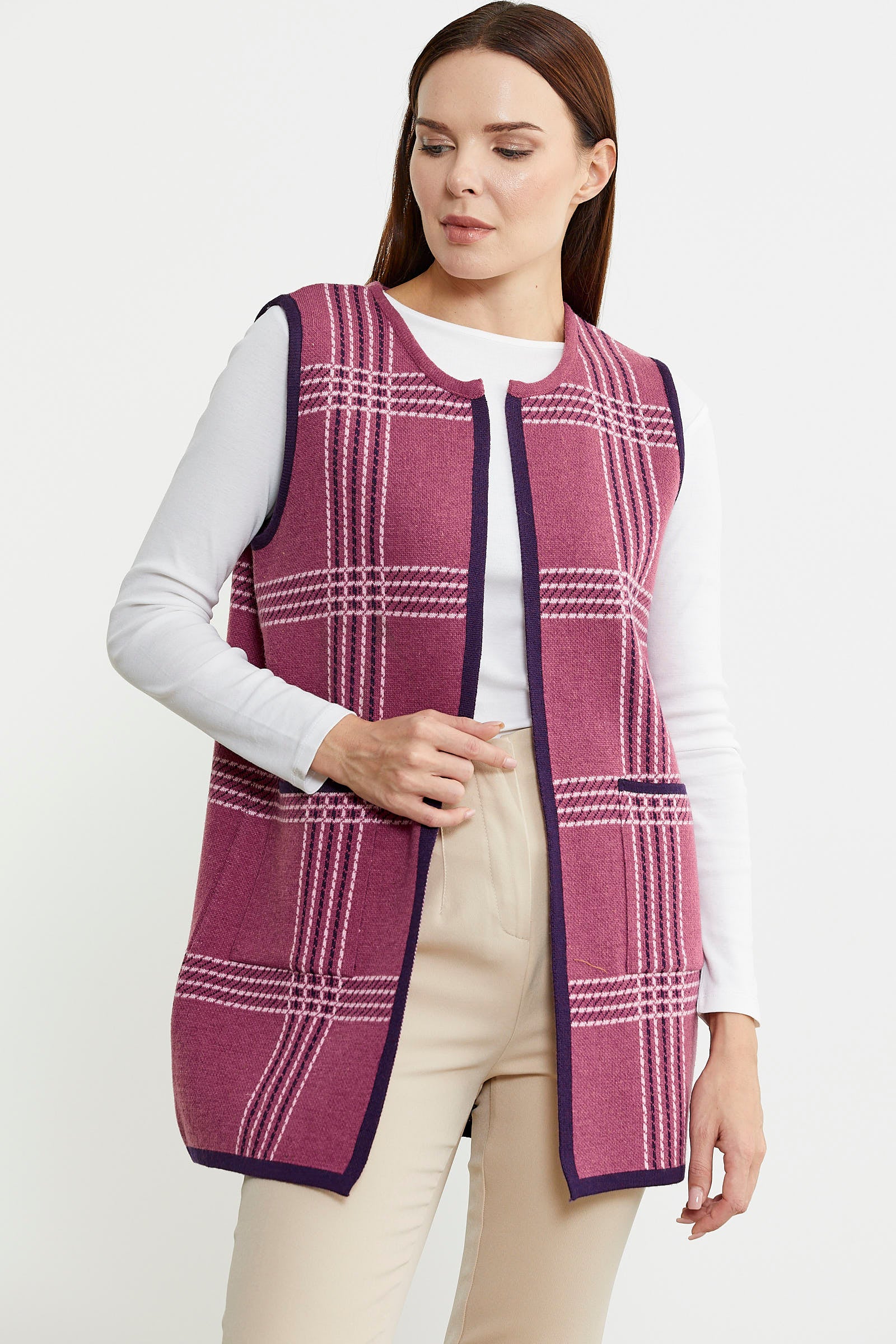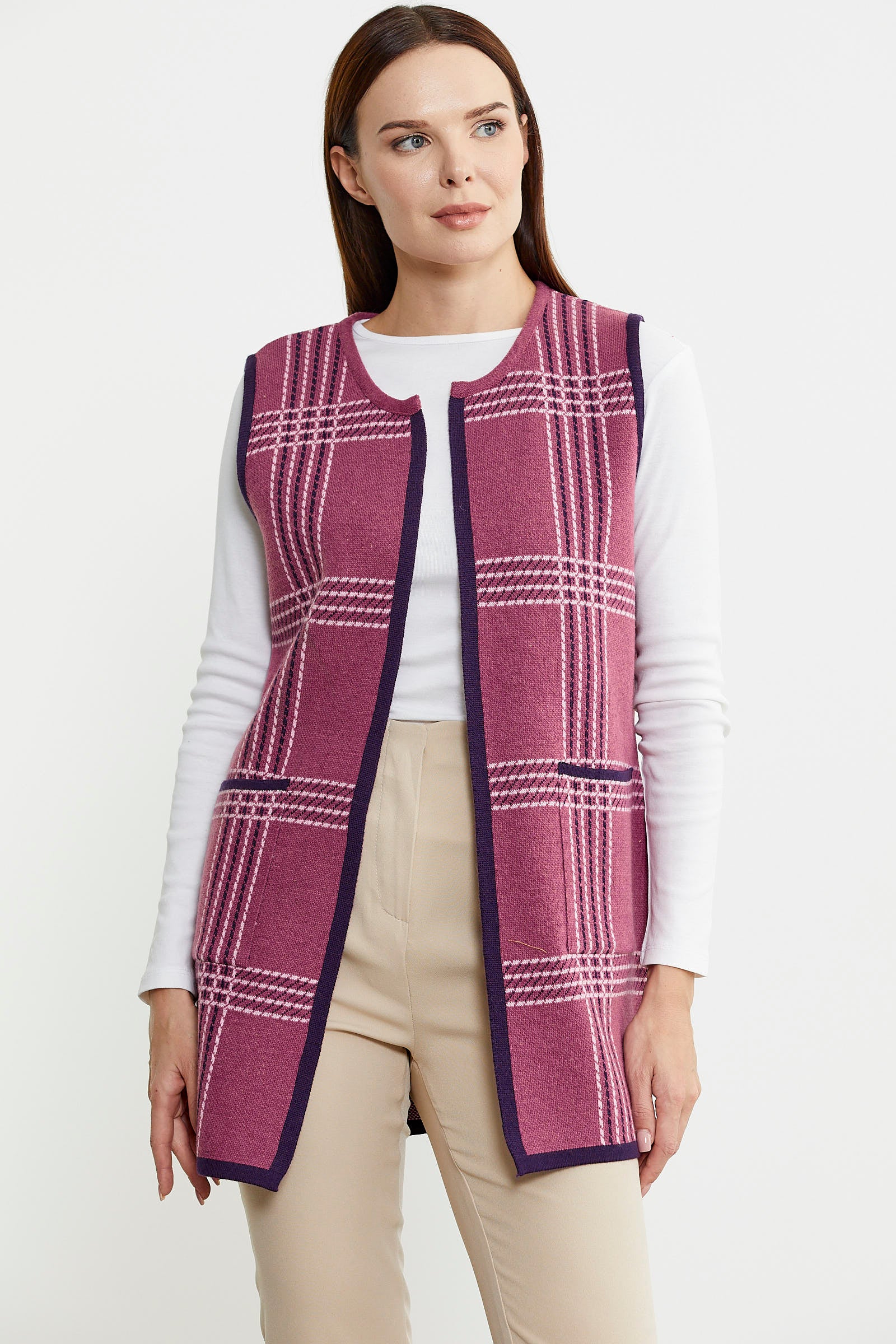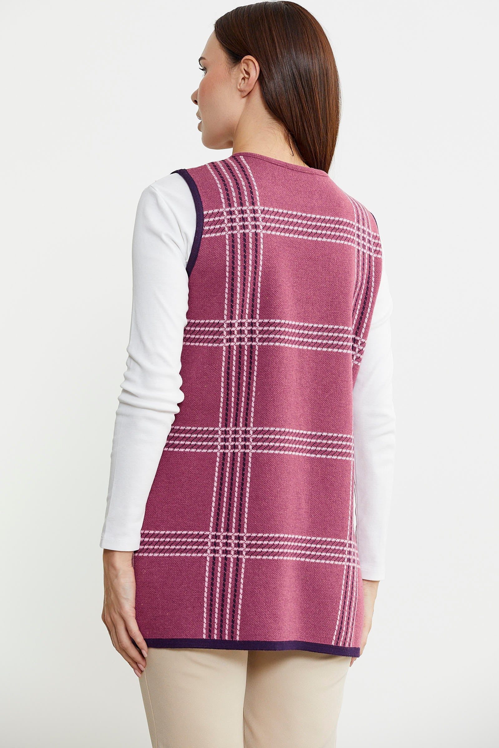 Dolu İğne Çift Renk Yünlü Triko Yelek - Gül
