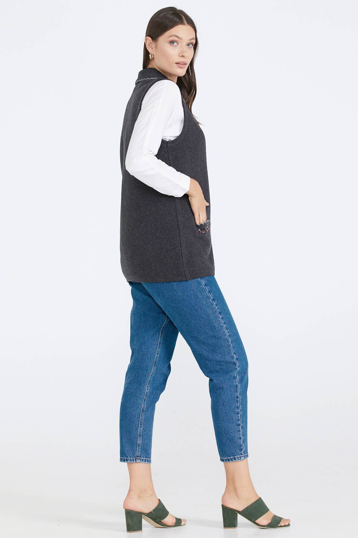 Kadın Cepli Düğmeli Triko Yelek - Antrasit