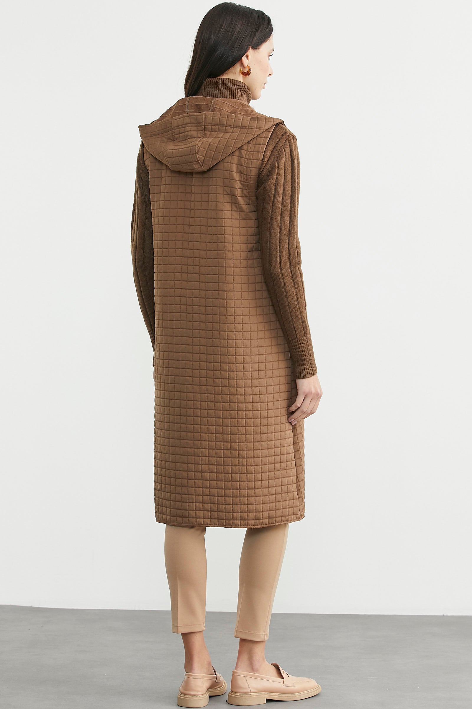 Kapüşonlu Astarsız Tunik Boy Yelek - Vizon