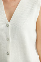 Selanik Örgü Düğmeli Yünlü Triko Yelek - Kemik