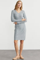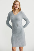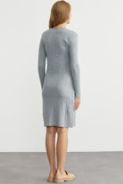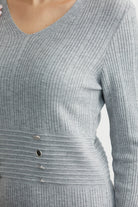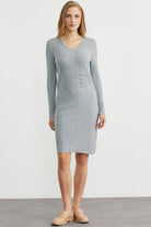 Düğme Detaylı V Yaka Triko Elbise - Gri