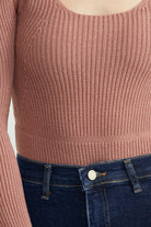 Fitilli Alttan Çıtçıtlı Triko Kazak - Gül