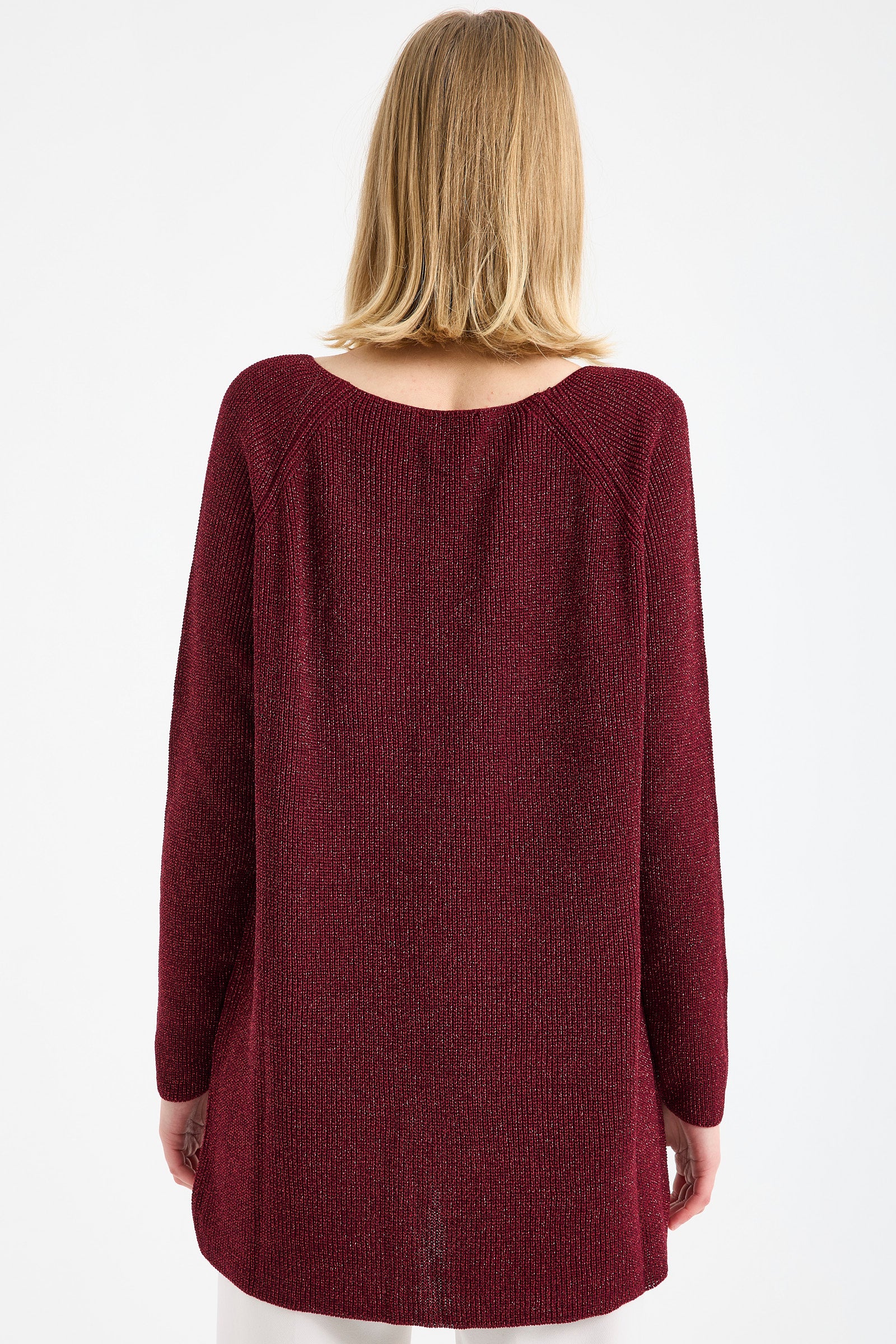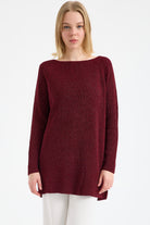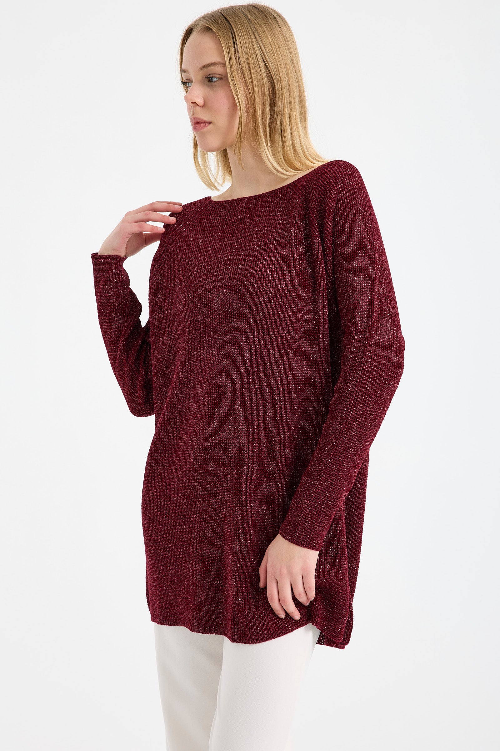 Geniş Yaka Reglan Kol Işıltılı Tunik Triko Kazak - Bordo