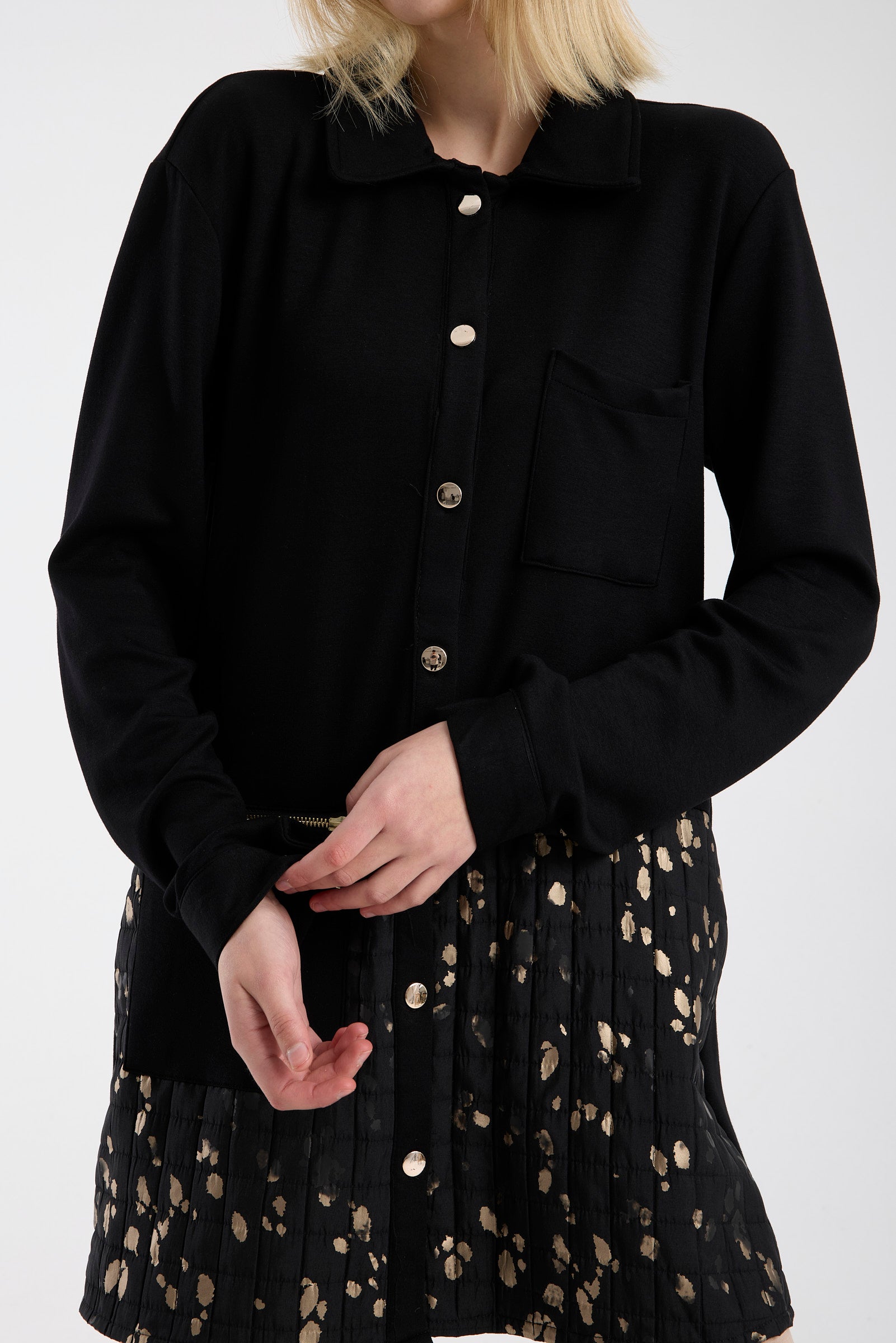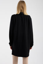 Gömlek Yaka Garnili Çıtçıtlı Tunik - Siyah