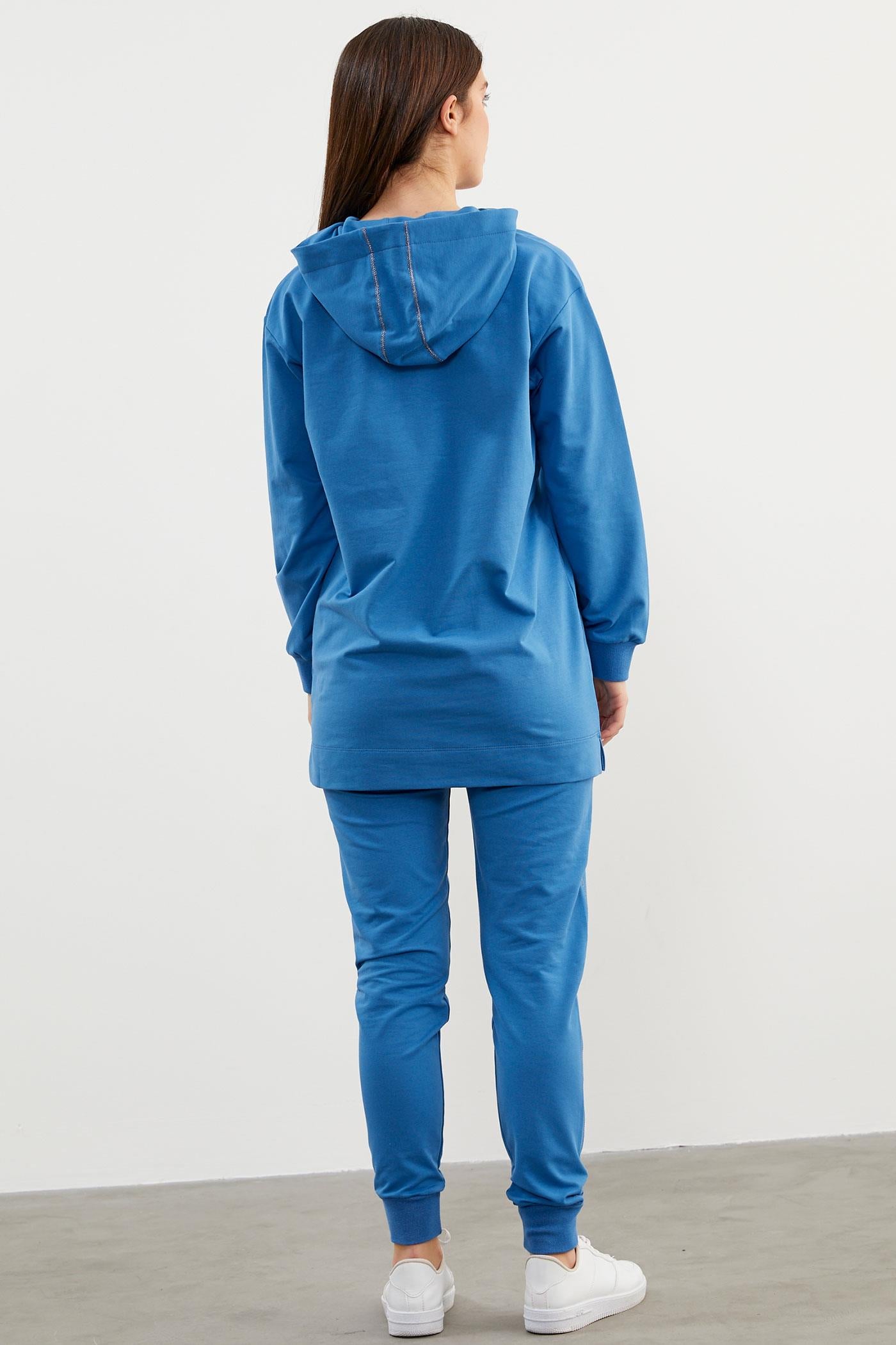 Oversize Kapüşonlu Eşofman Takım - Mavi