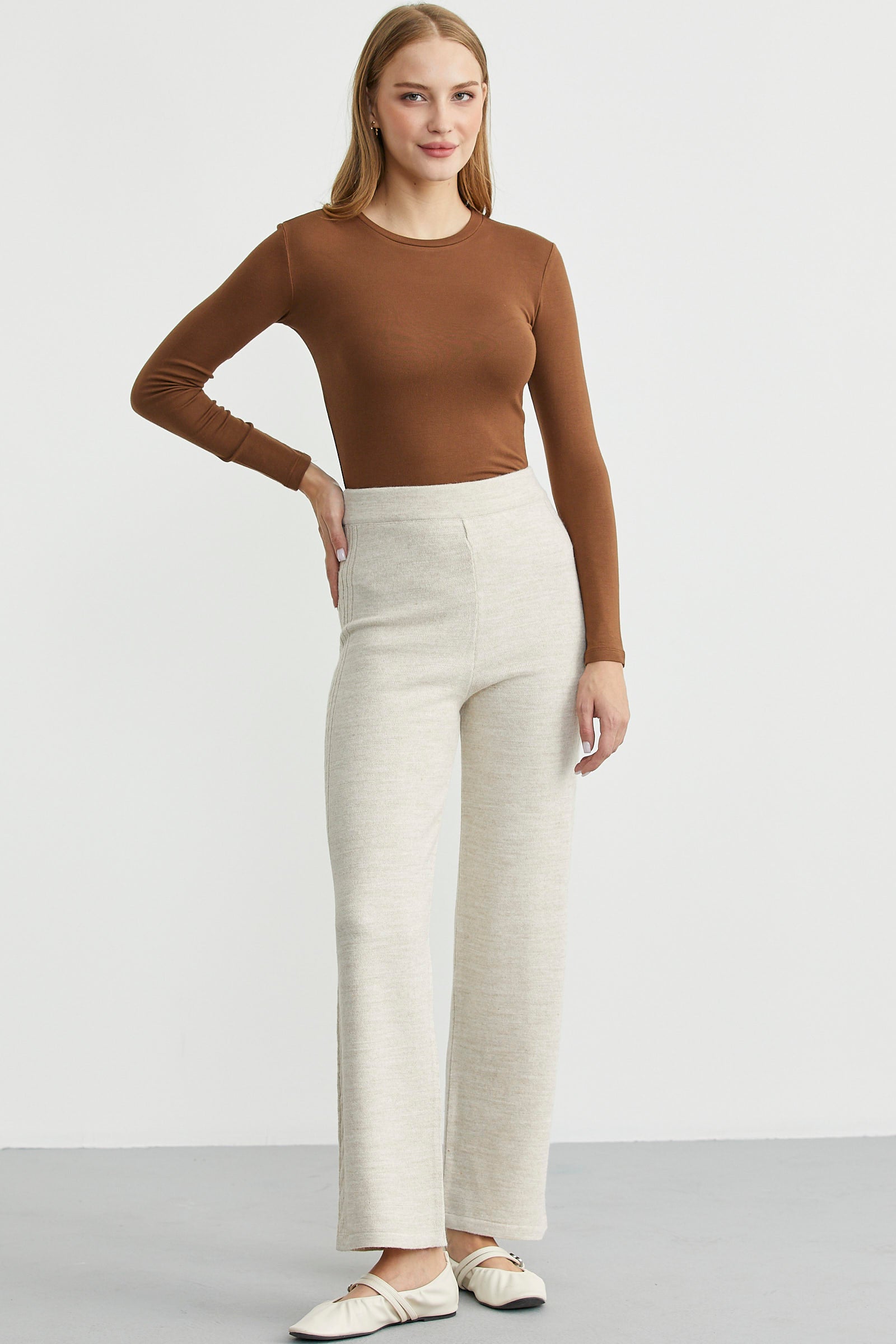 Yanı Motifli Rahat Kalıp Triko Pantolon - Taş