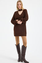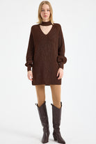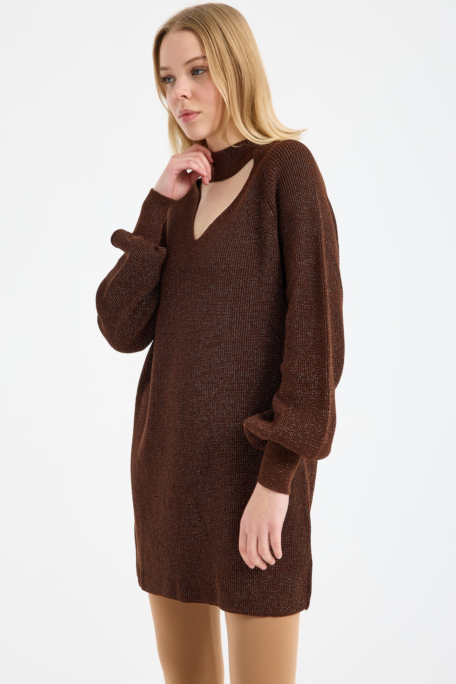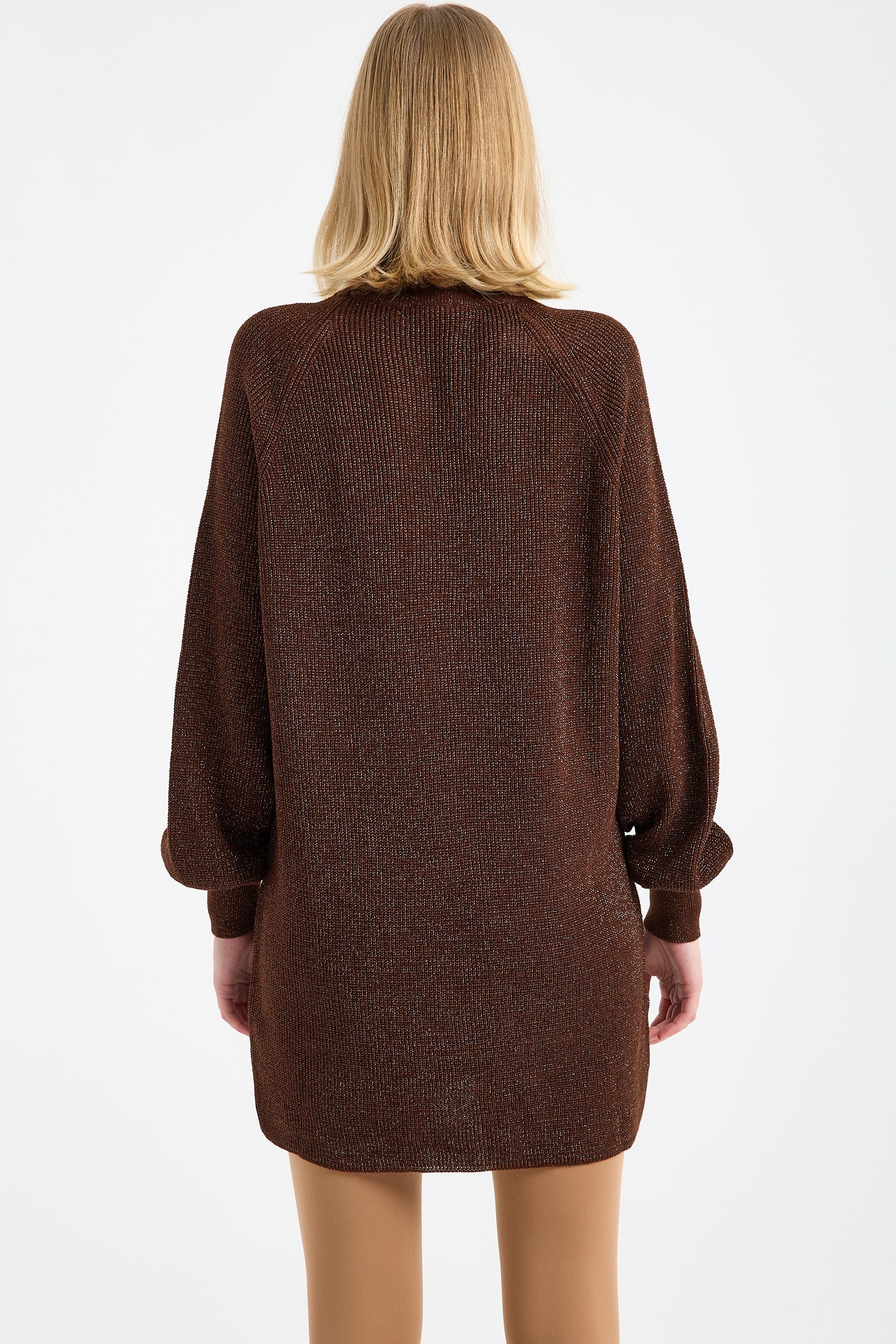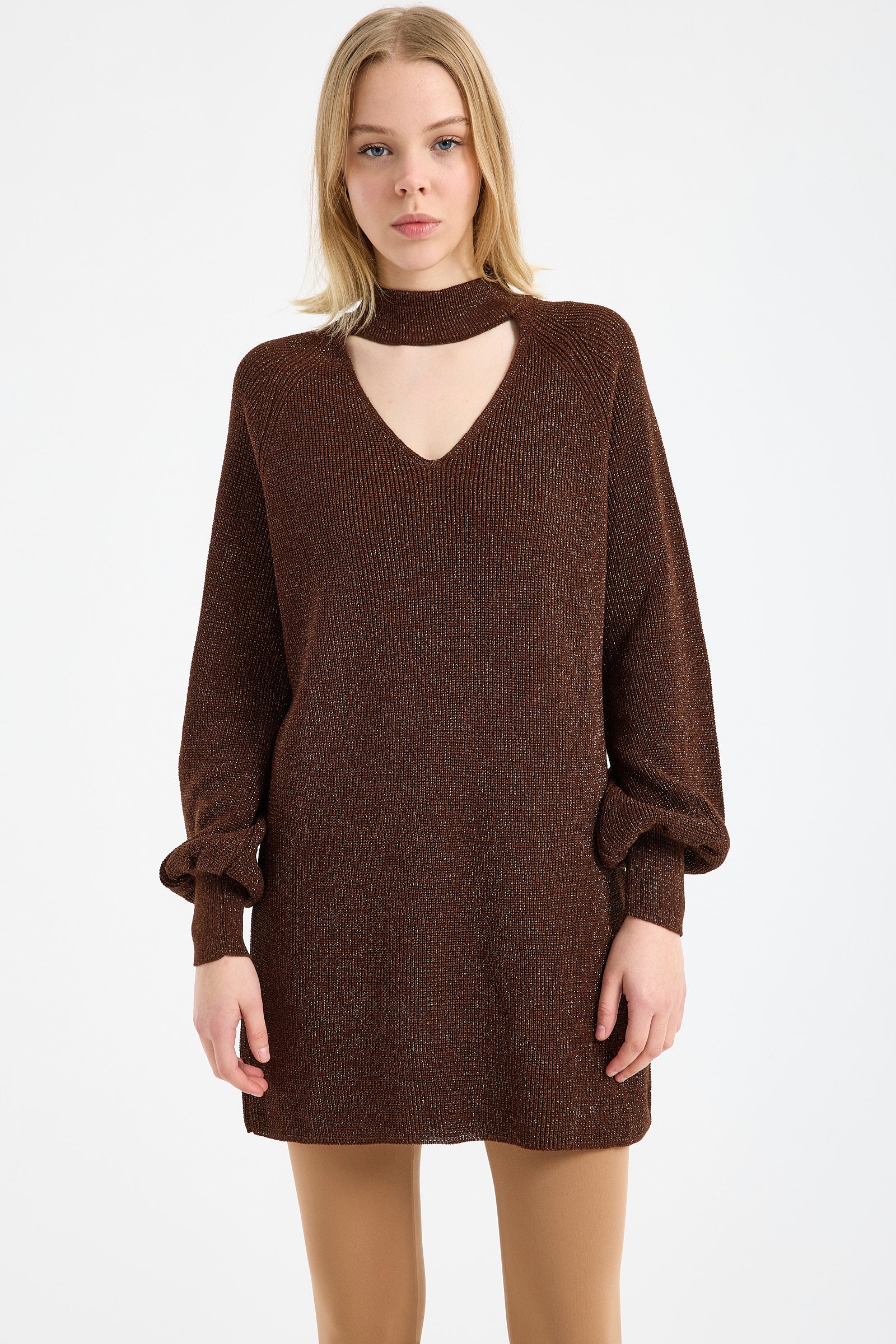 Yarım Balıkçı Yaka Detaylı Tunik Triko Kazak - Kahve