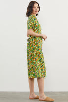 Çok Renk Desenli Gömlek Elbise - Yeşil