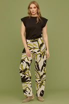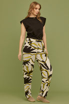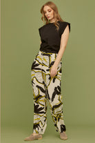 Desenli Rahat Kalıp Viskon Pantolon - Siyah