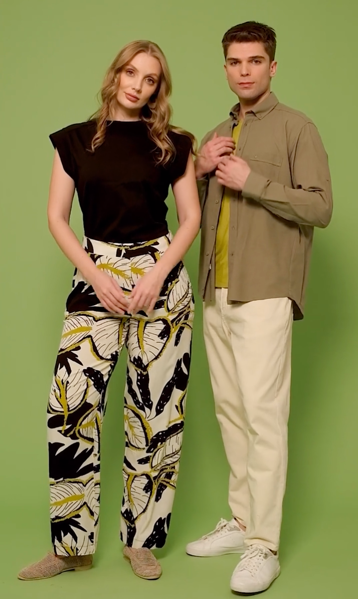 Desenli, bol paça, cepli pantolon. Bel arkası lastiklidir. Geniş kalıptır.
