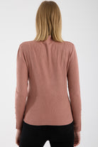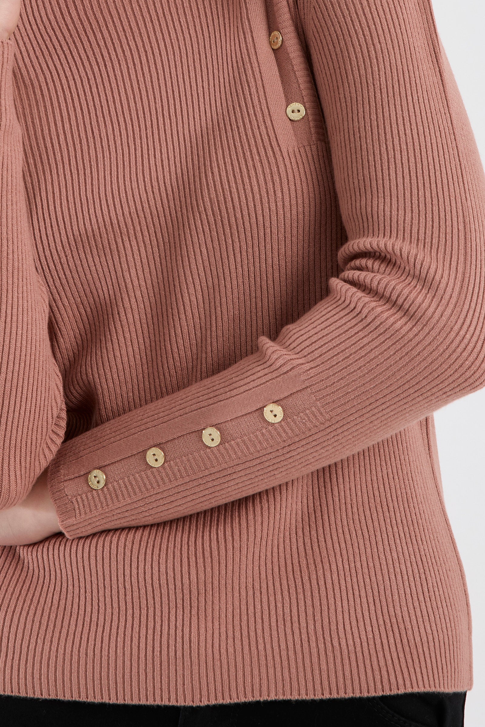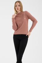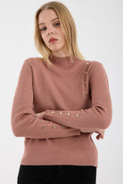 Düğme Detaylı Fitilli Triko Kazak - Gül
