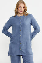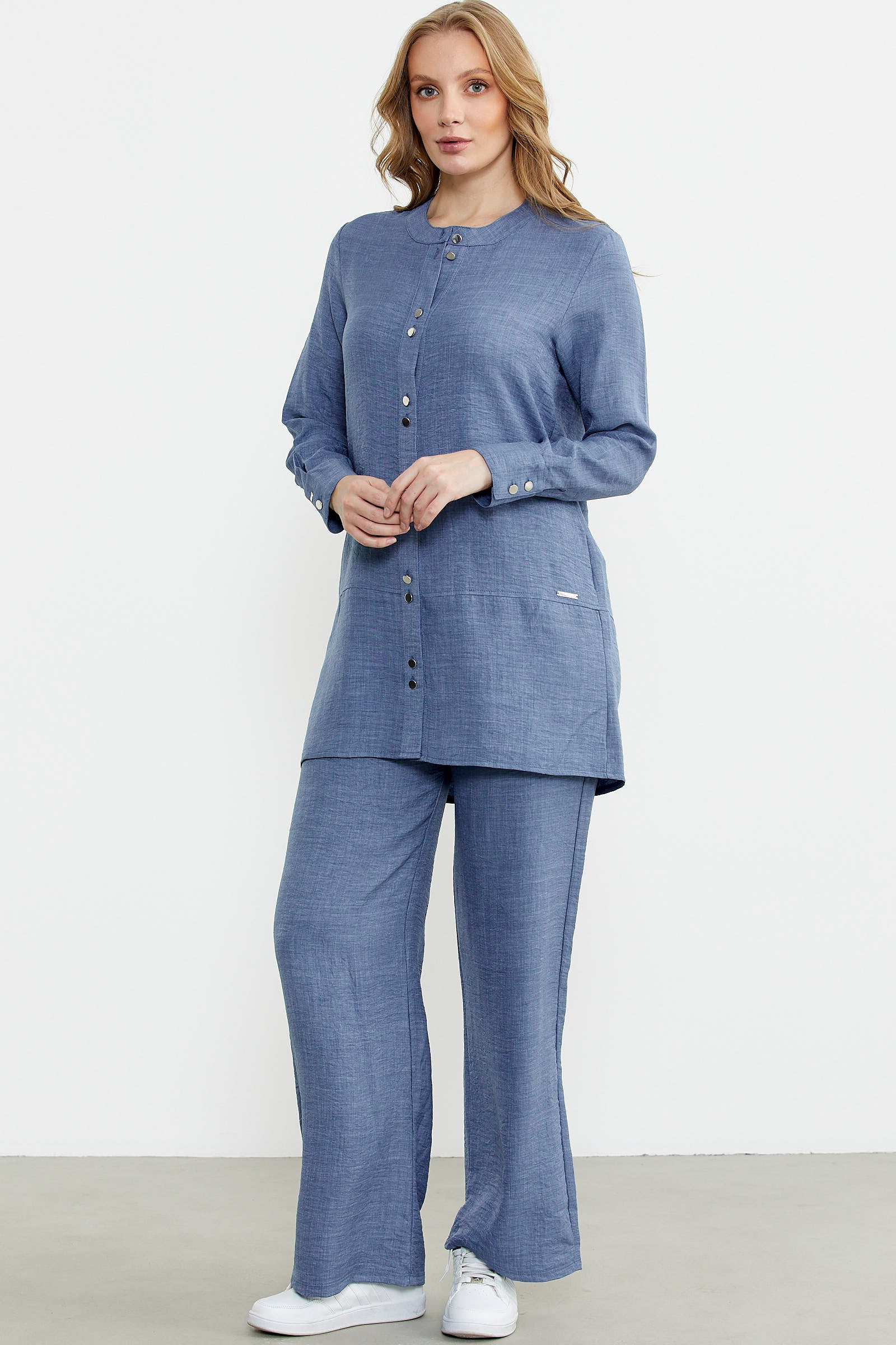 Keten Görünümlü Gömlek Pantolon Takım - Indigo