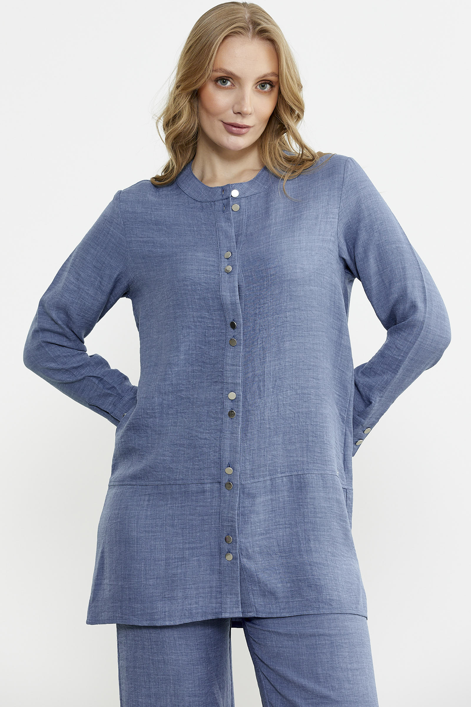 Düğme kapamalı tunik üst ve bol paça pantolon içeren takım. Keten görünümlü viskon kumaştan üretilmiştir. Rahat kalıptır.