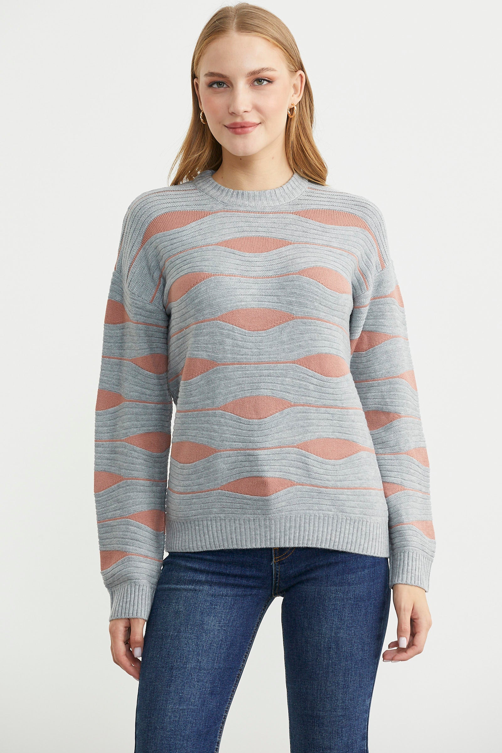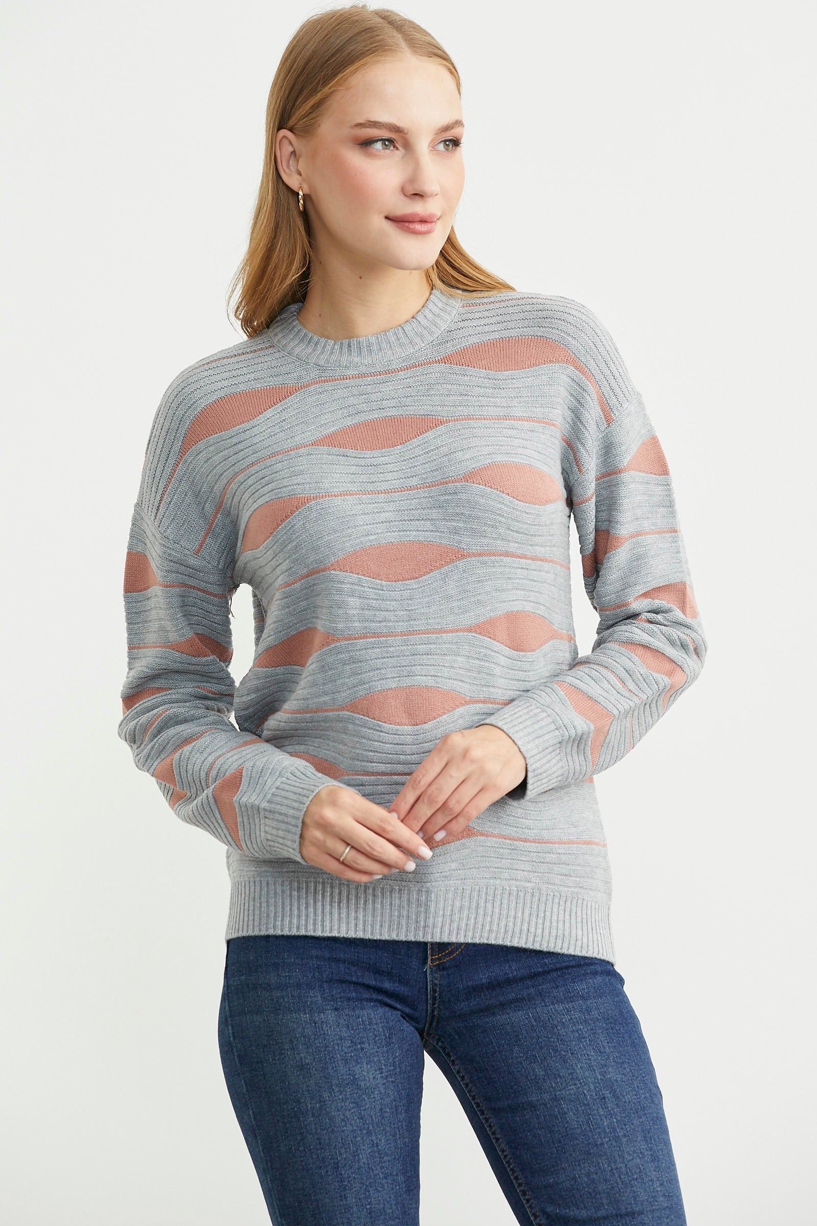 Renk Kombinli Triko Kazak - Gri