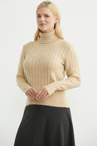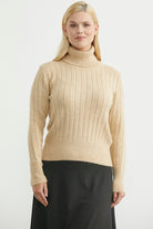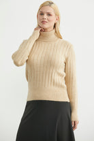 Tam Balıkçı Kalın Fitilli Triko Kazak - Karamel