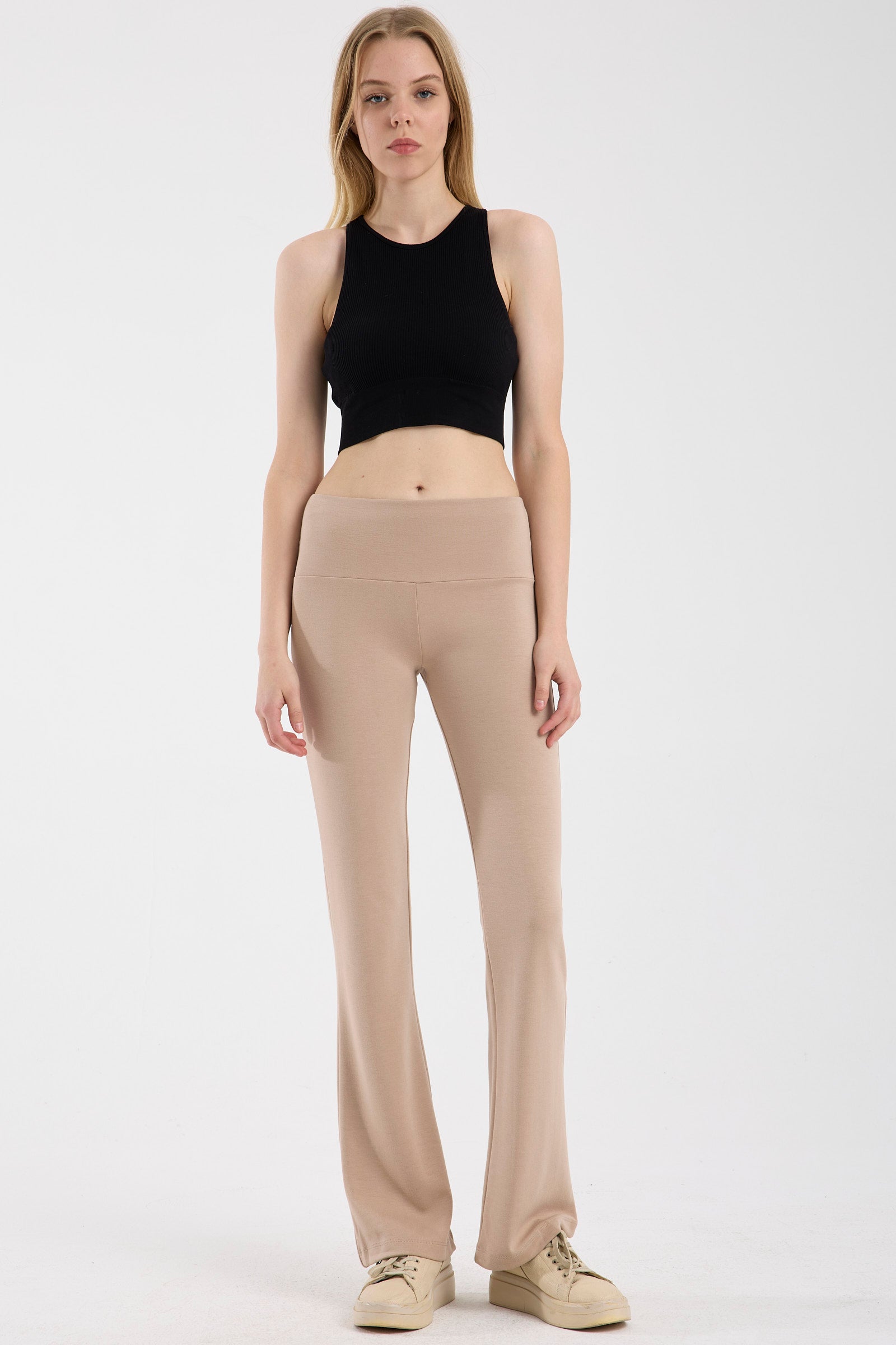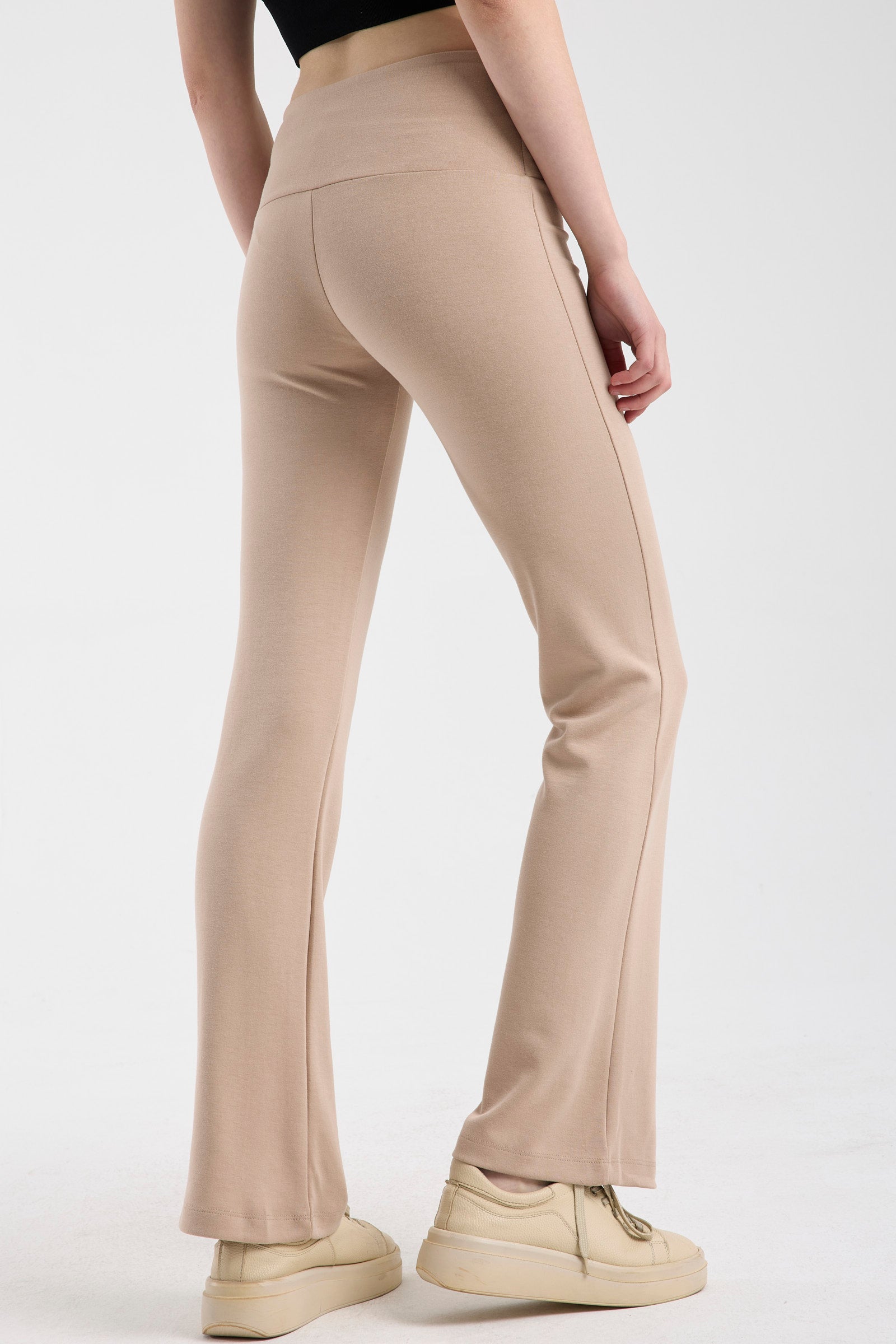 Yüksel Bel Yumuşak Dokulu Eşofman Alt - Bej