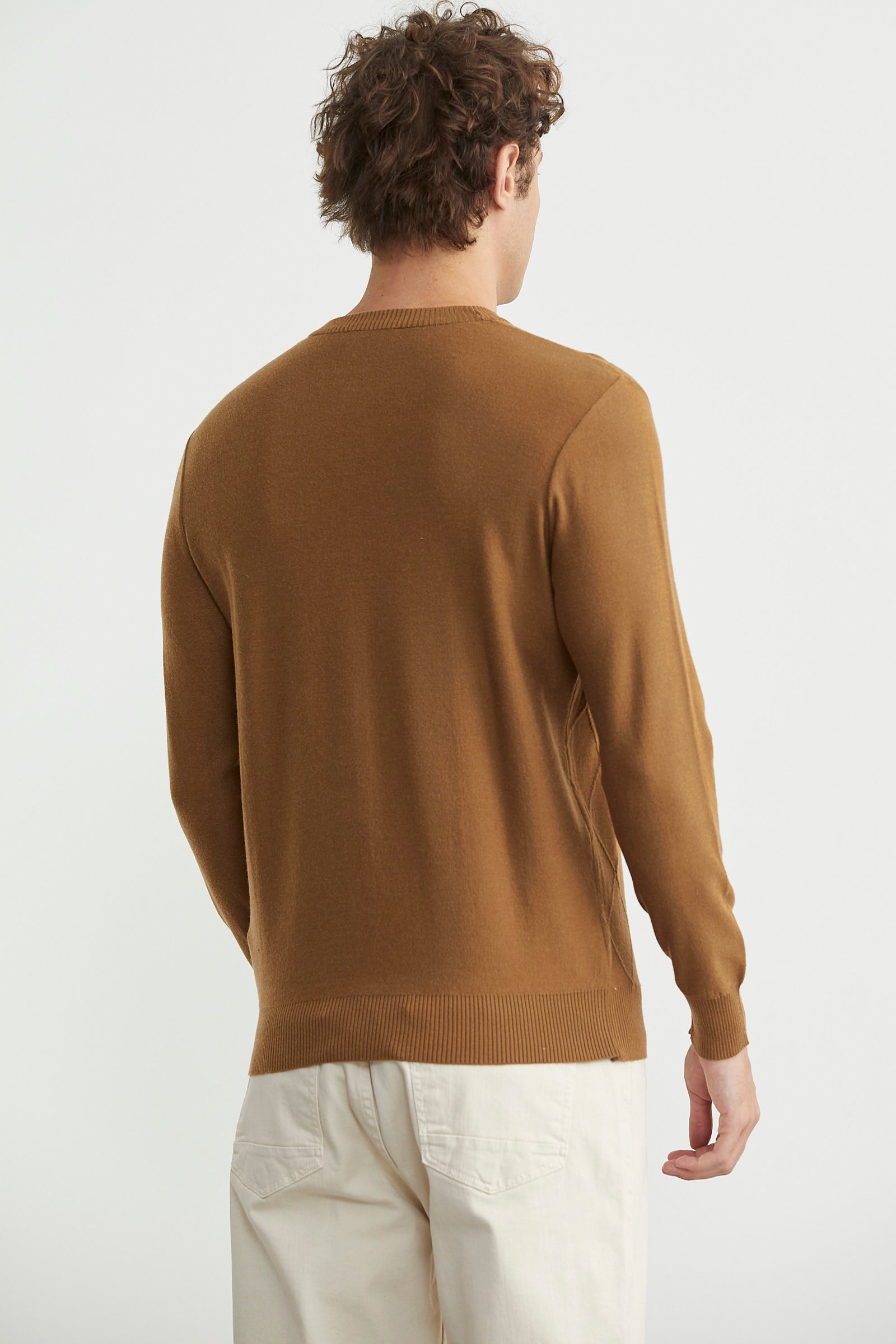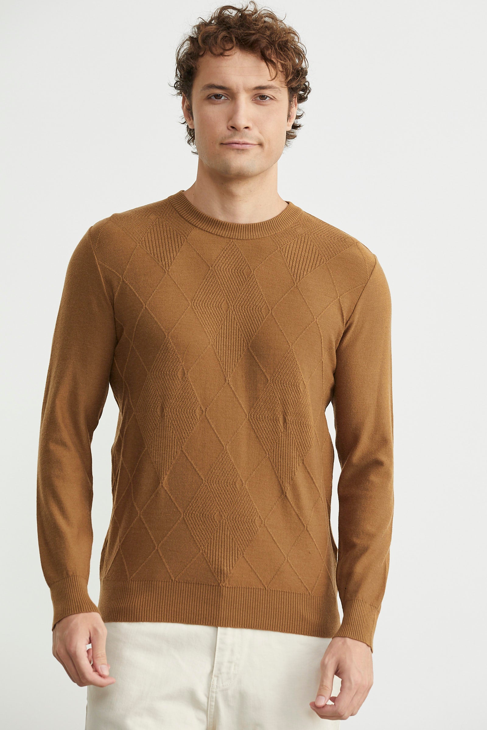 Baklava Motif Detaylı Triko Kazak - Kamel