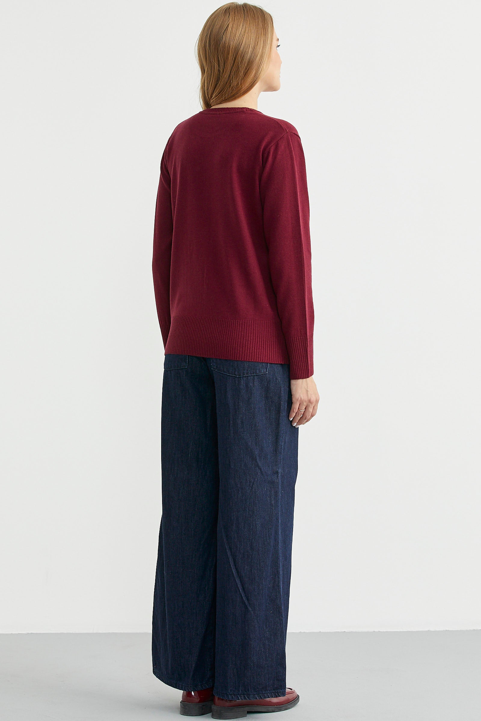 Bisiklet Yaka Yünlü Basic Triko Kazak - Bordo