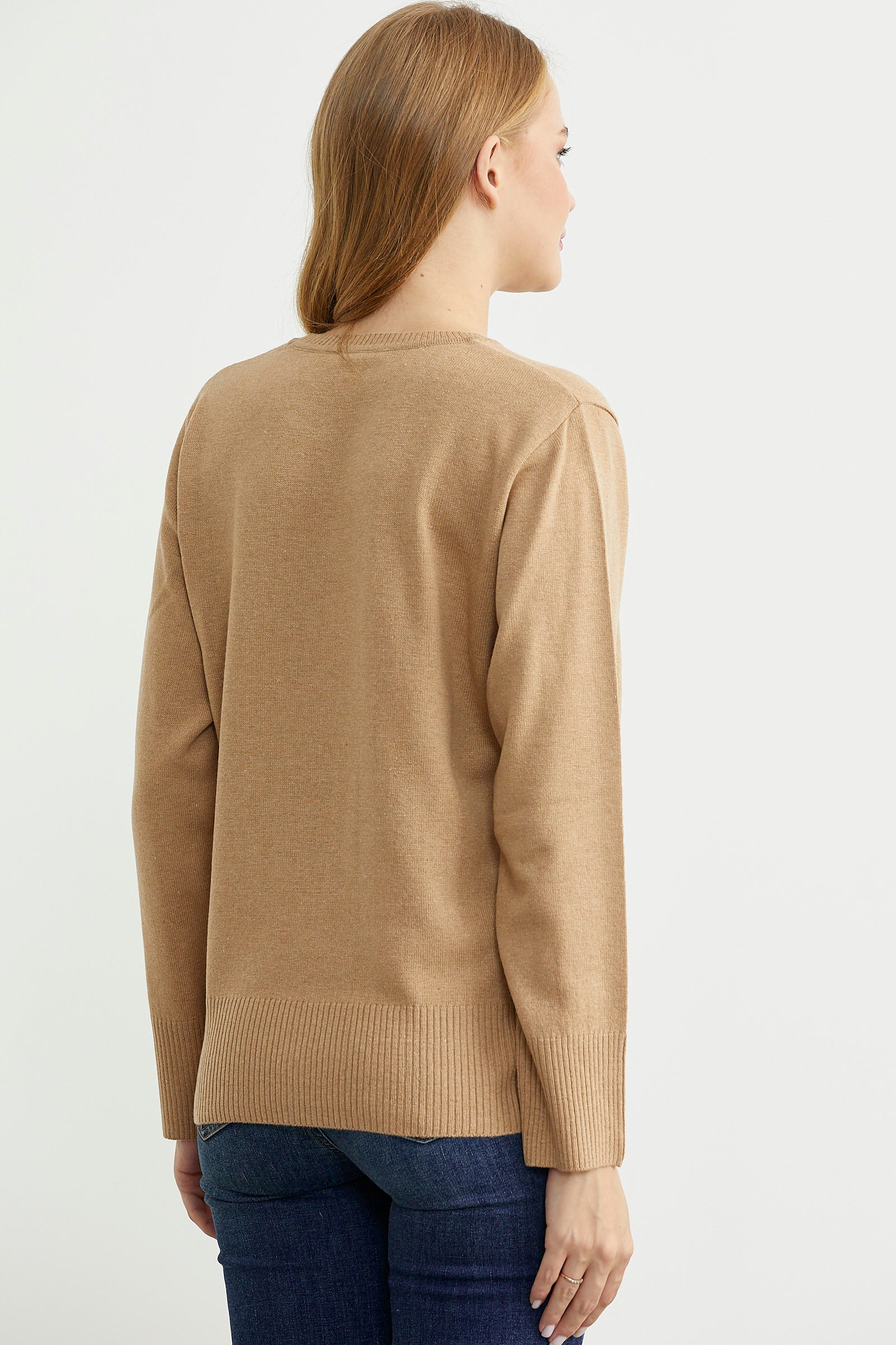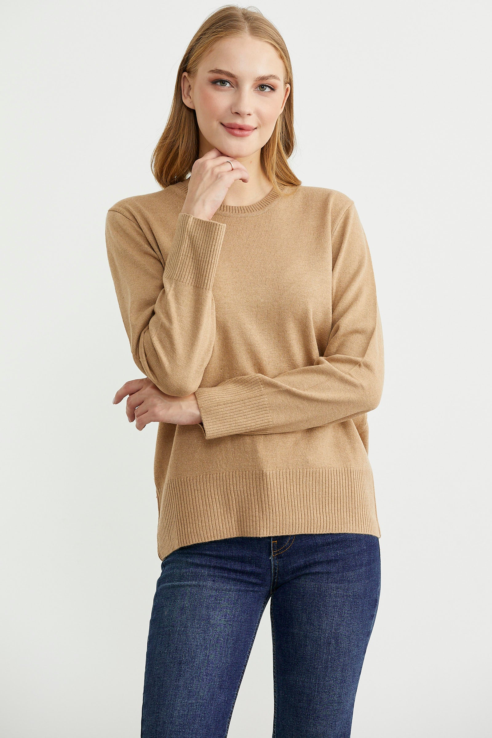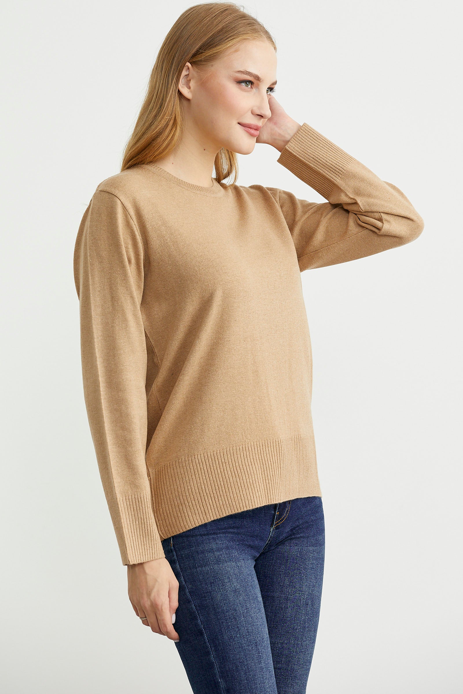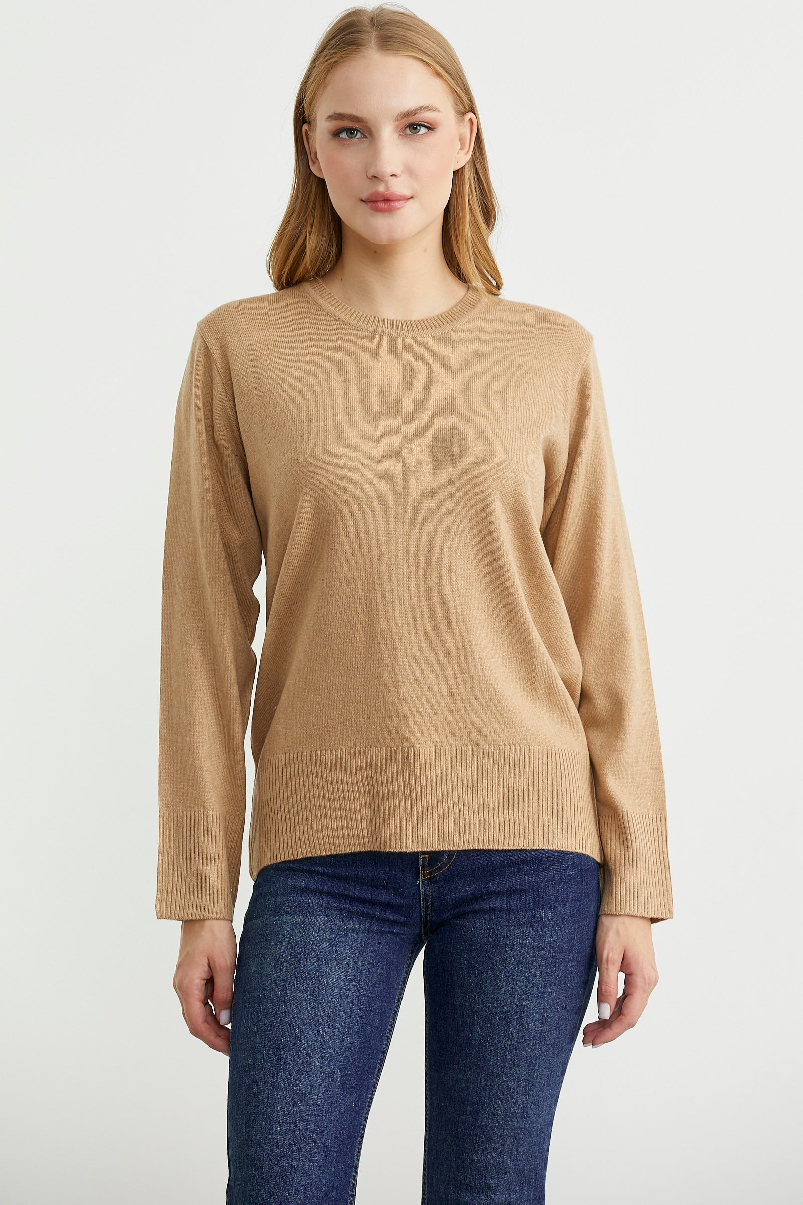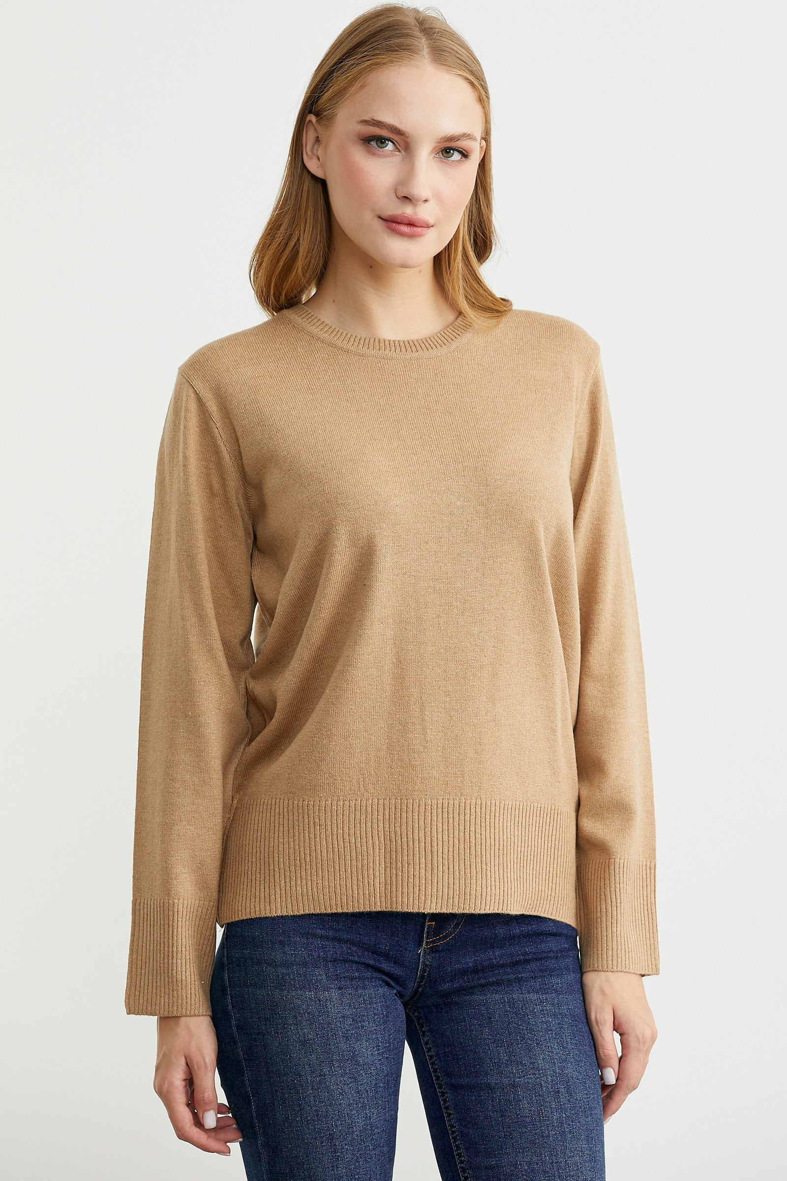 Bisiklet Yaka Yünlü Basic Triko Kazak - Kamel