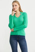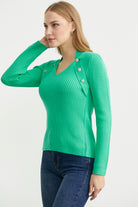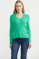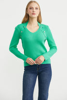 Boyundan Bantlı Fitilli Triko Kazak - Yeşil