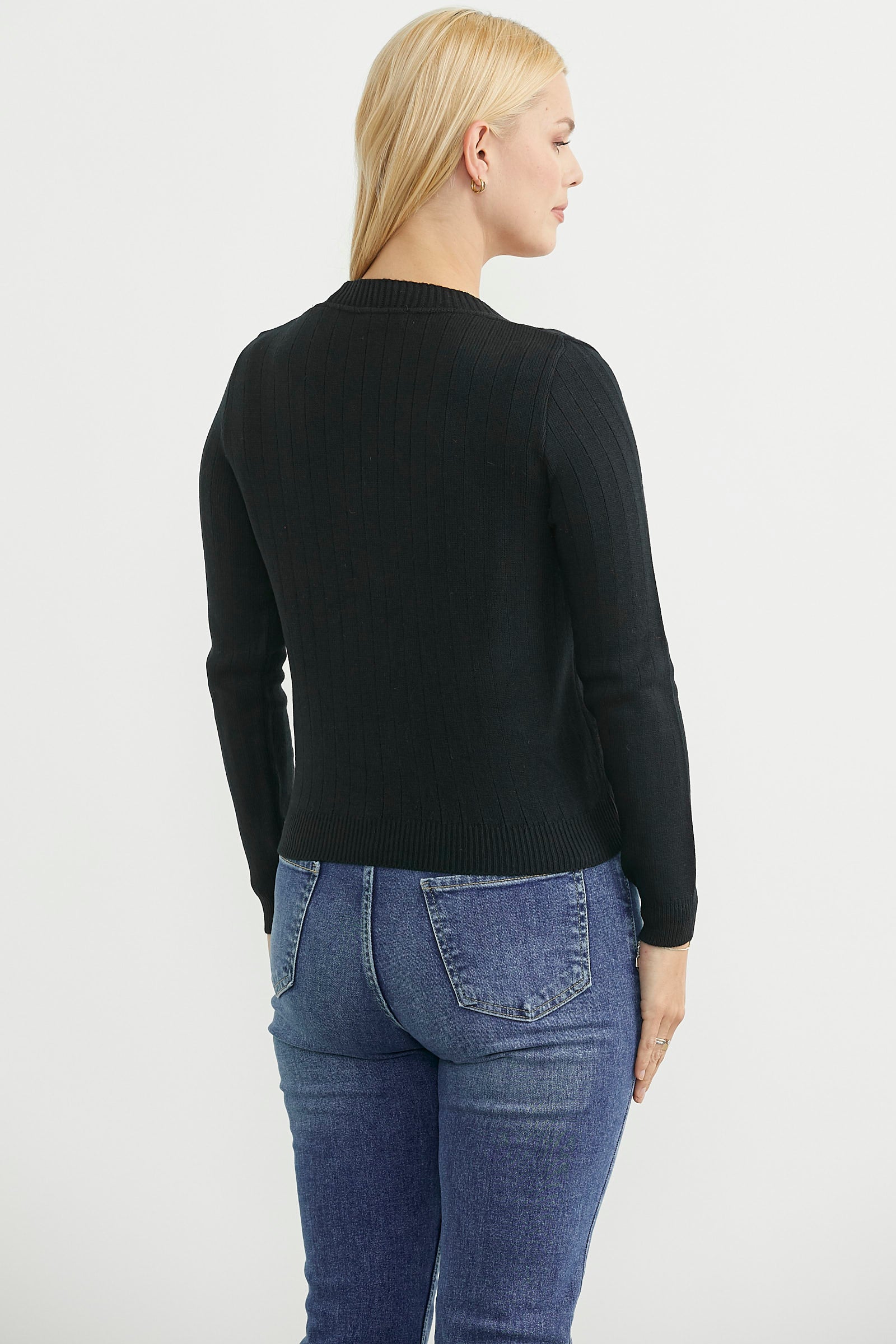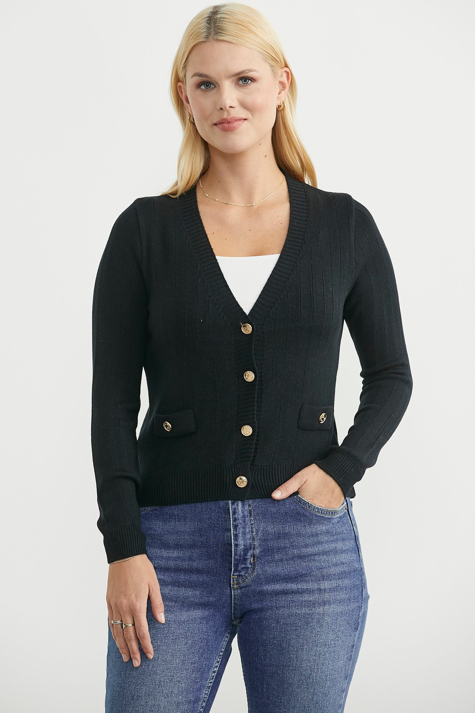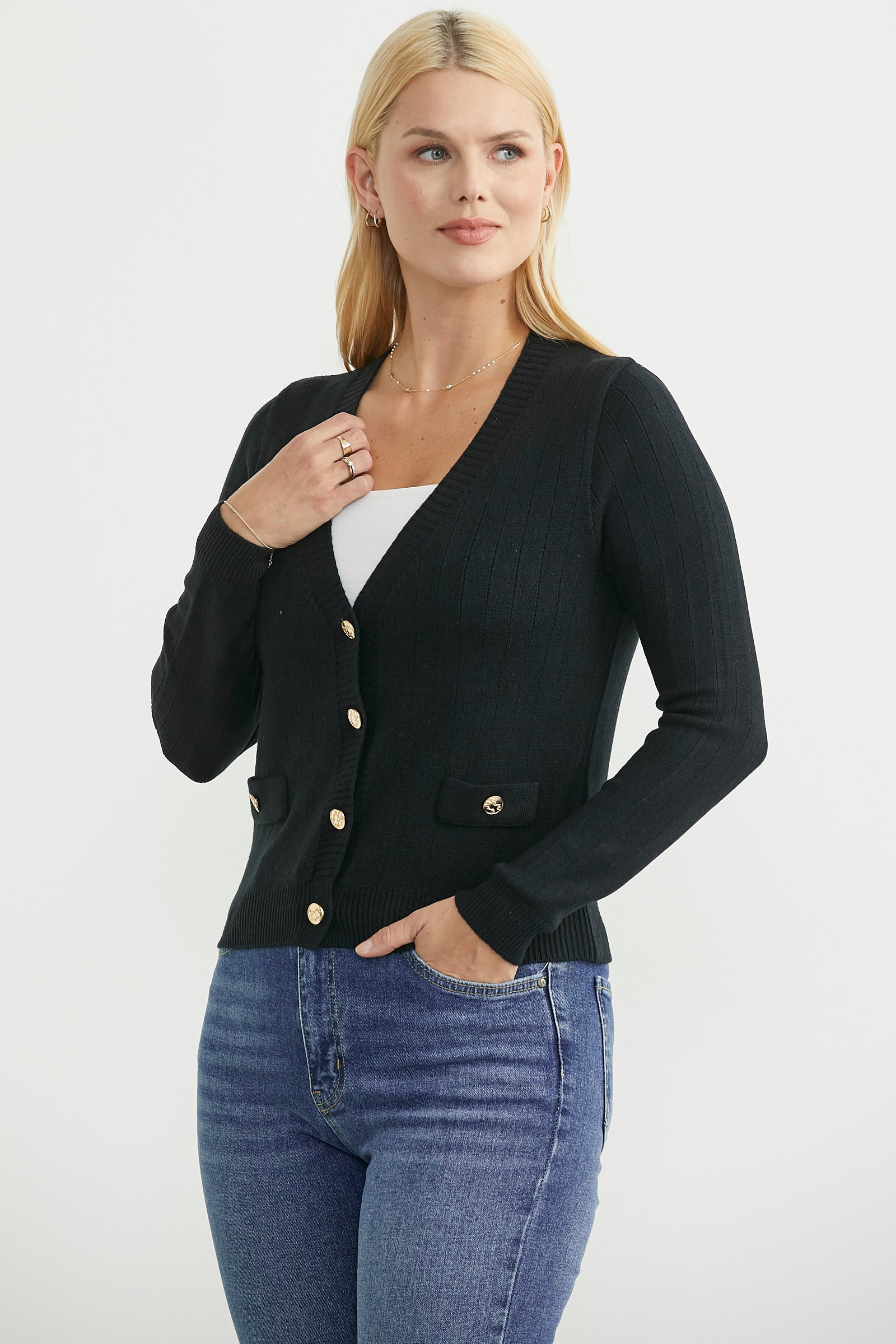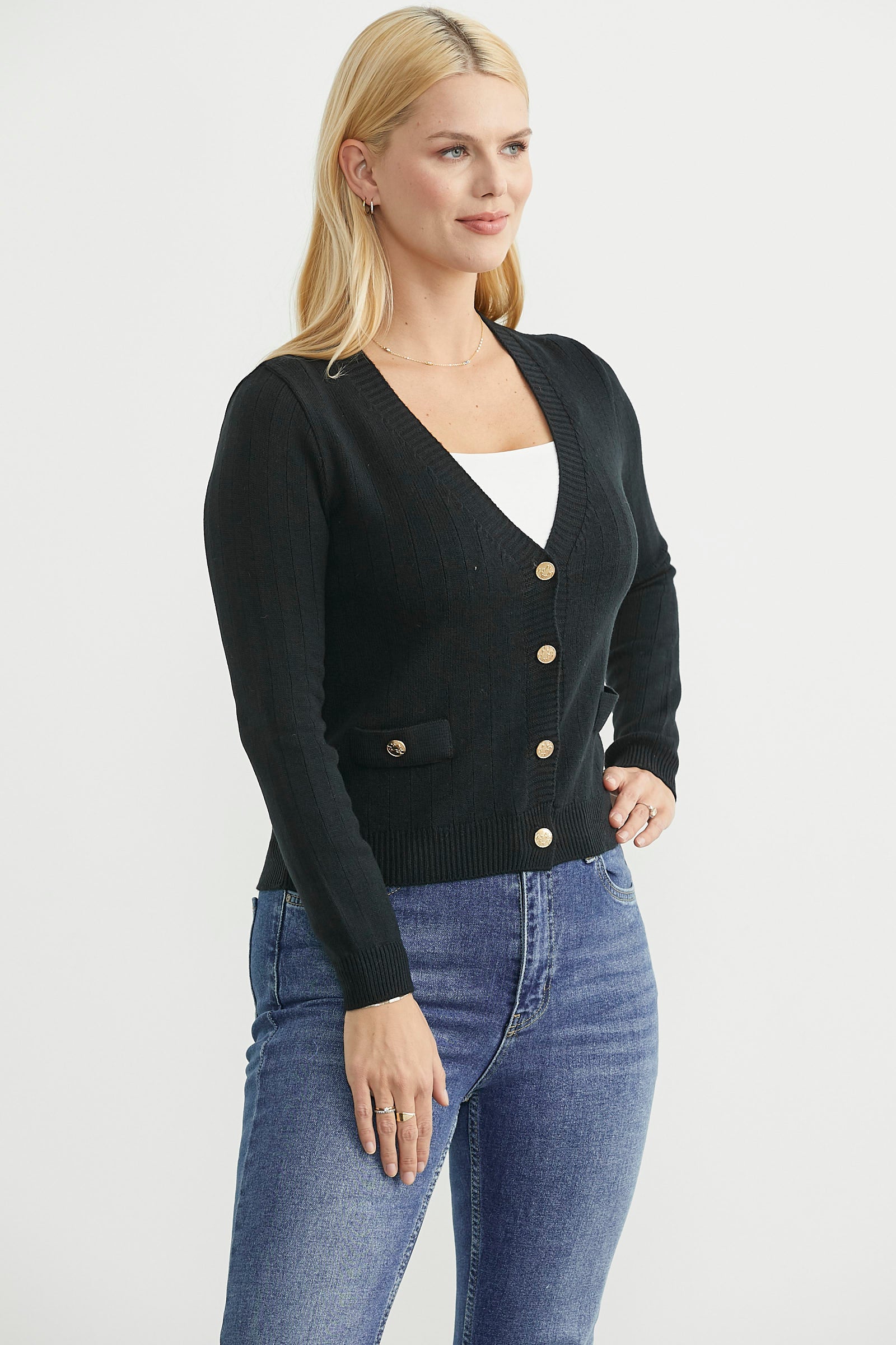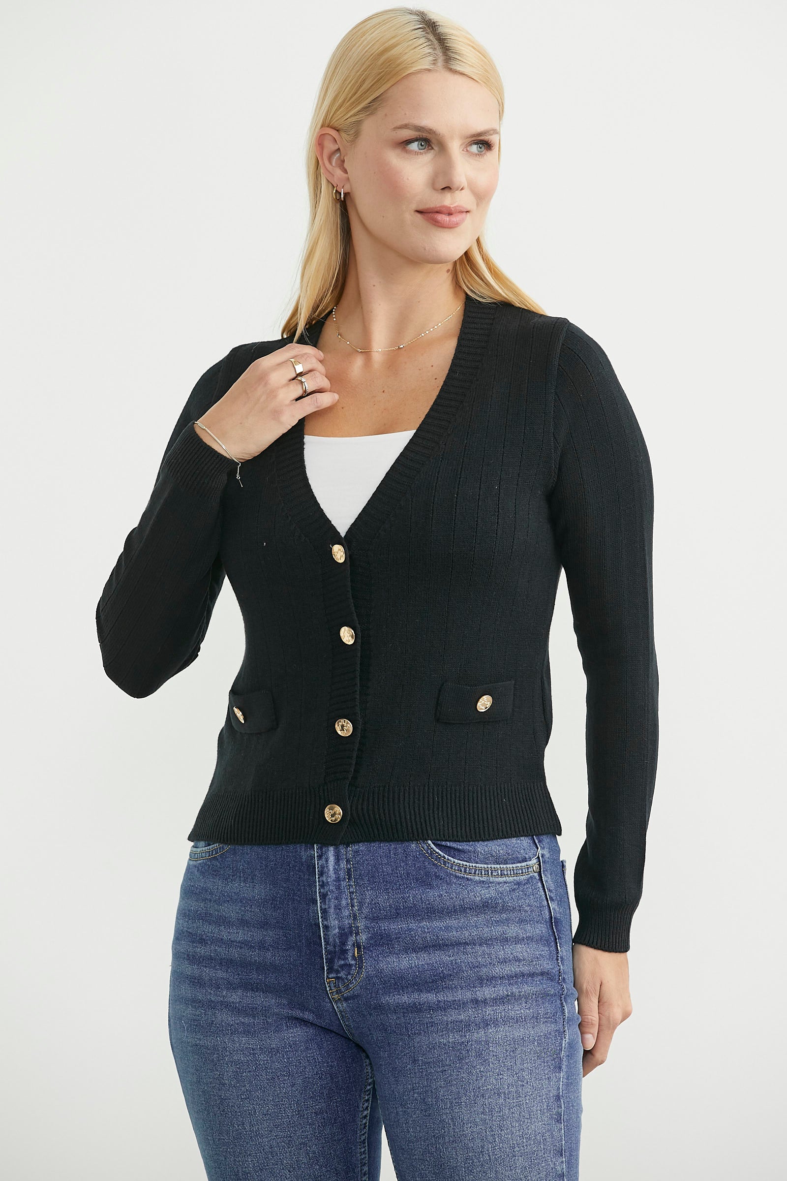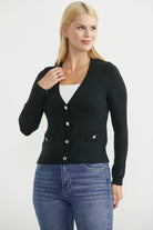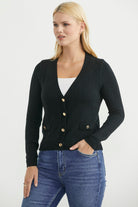 Cep Detaylı Düğmeli Triko Hırka - Siyah