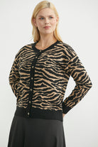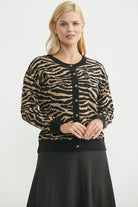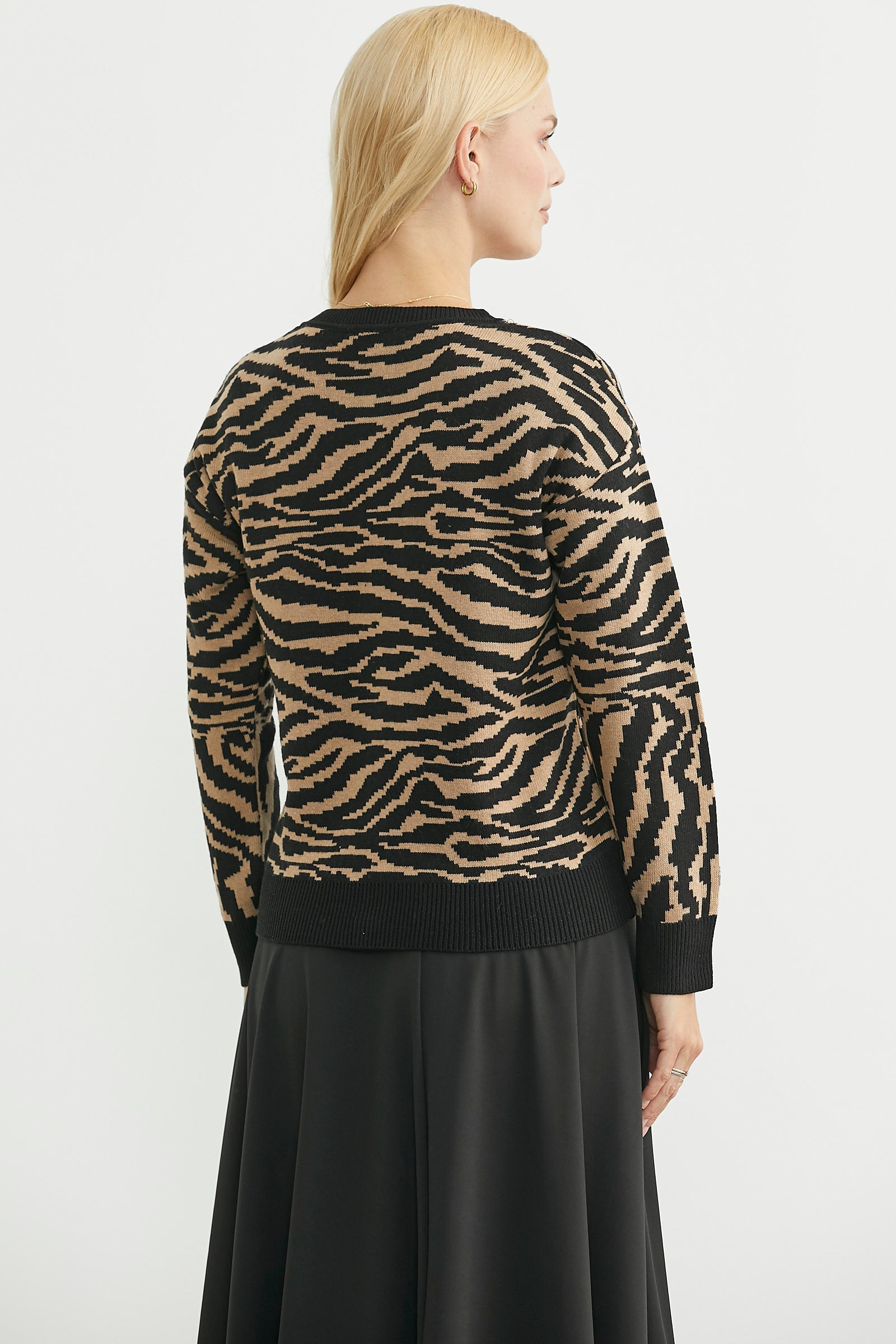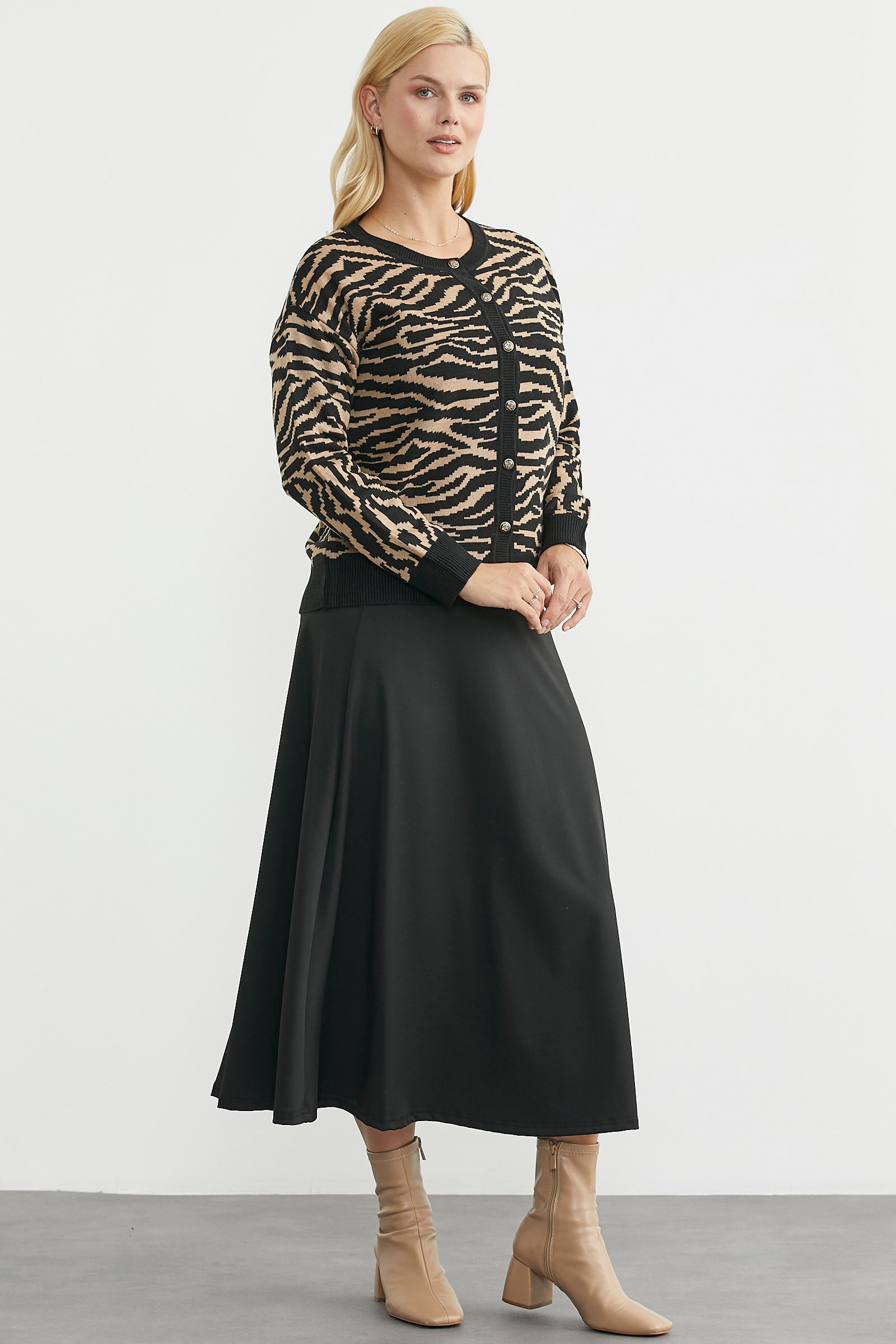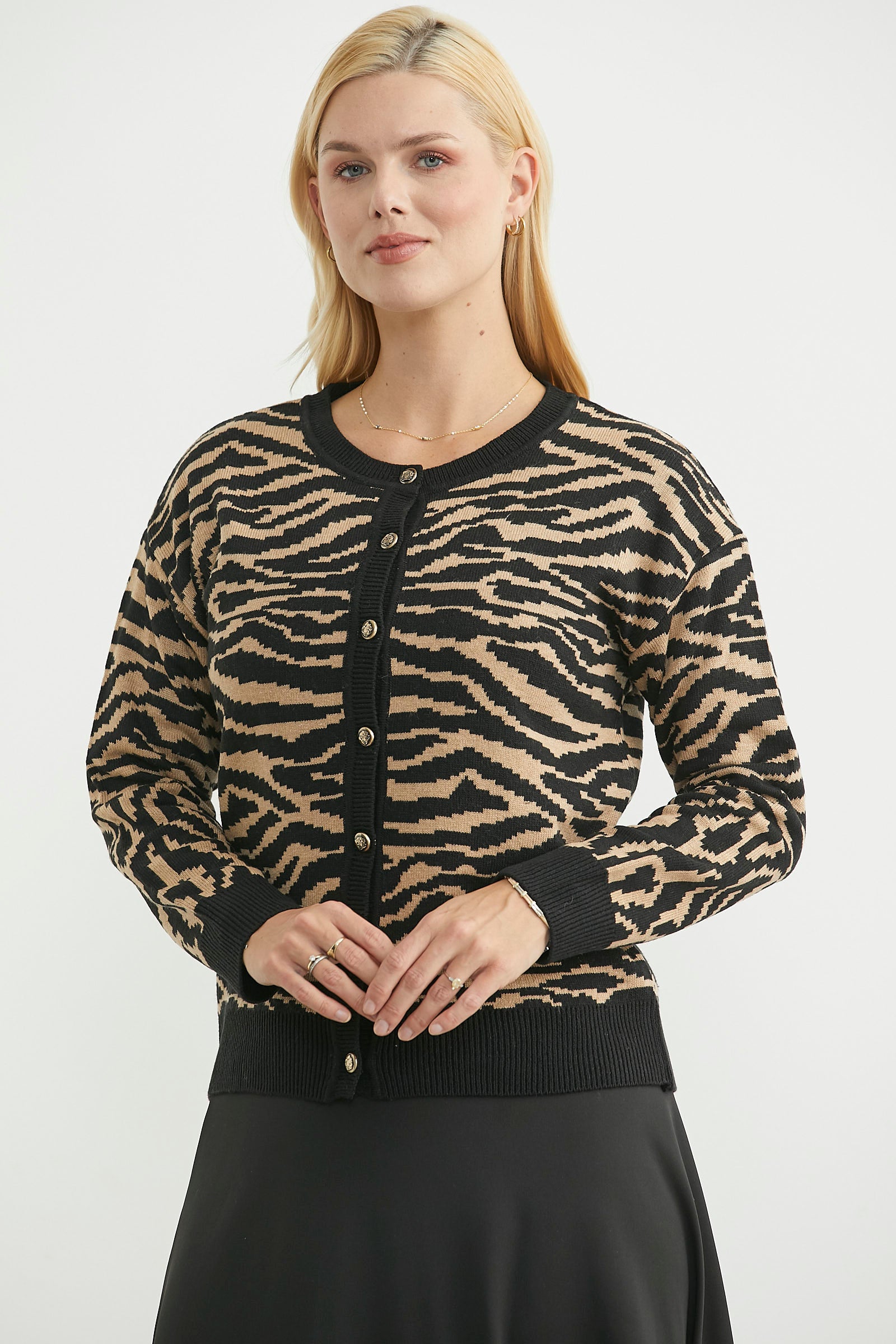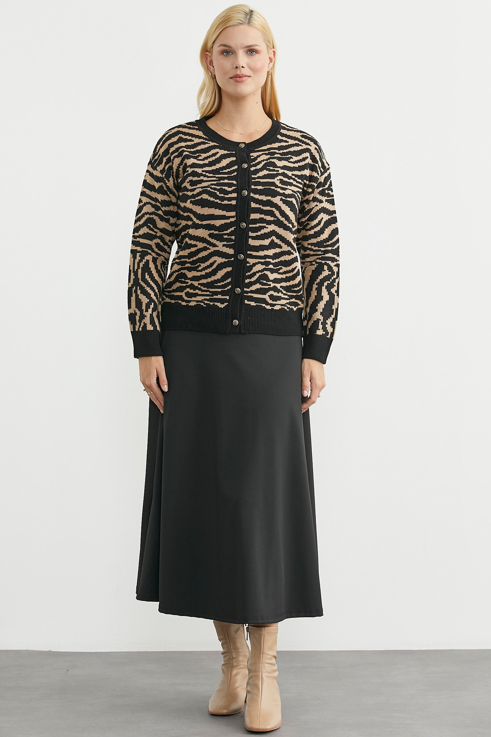Desenli Sıfır Yaka Yünlü Triko Hırka - Siyah