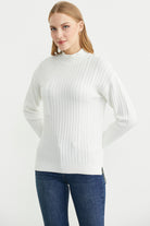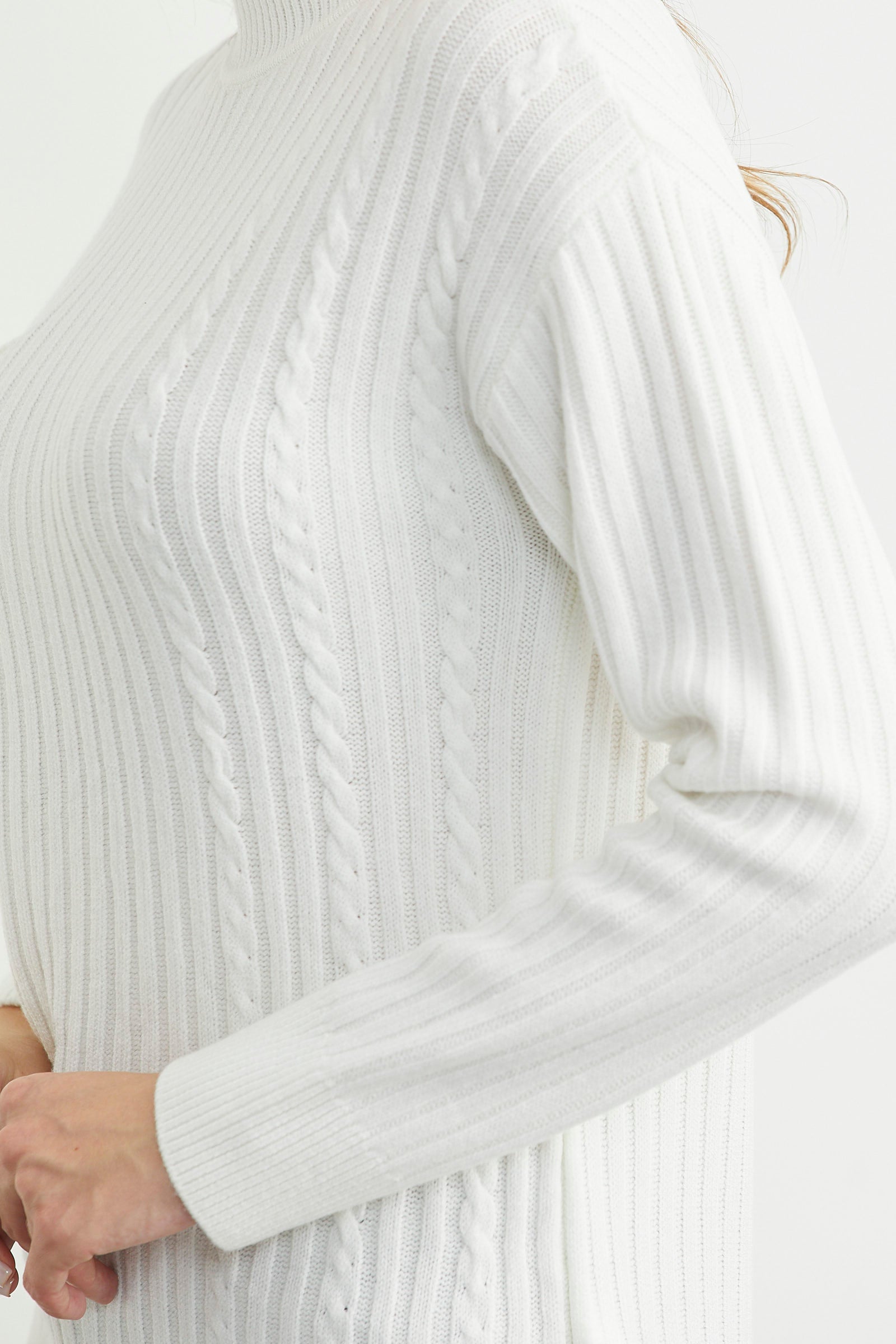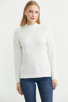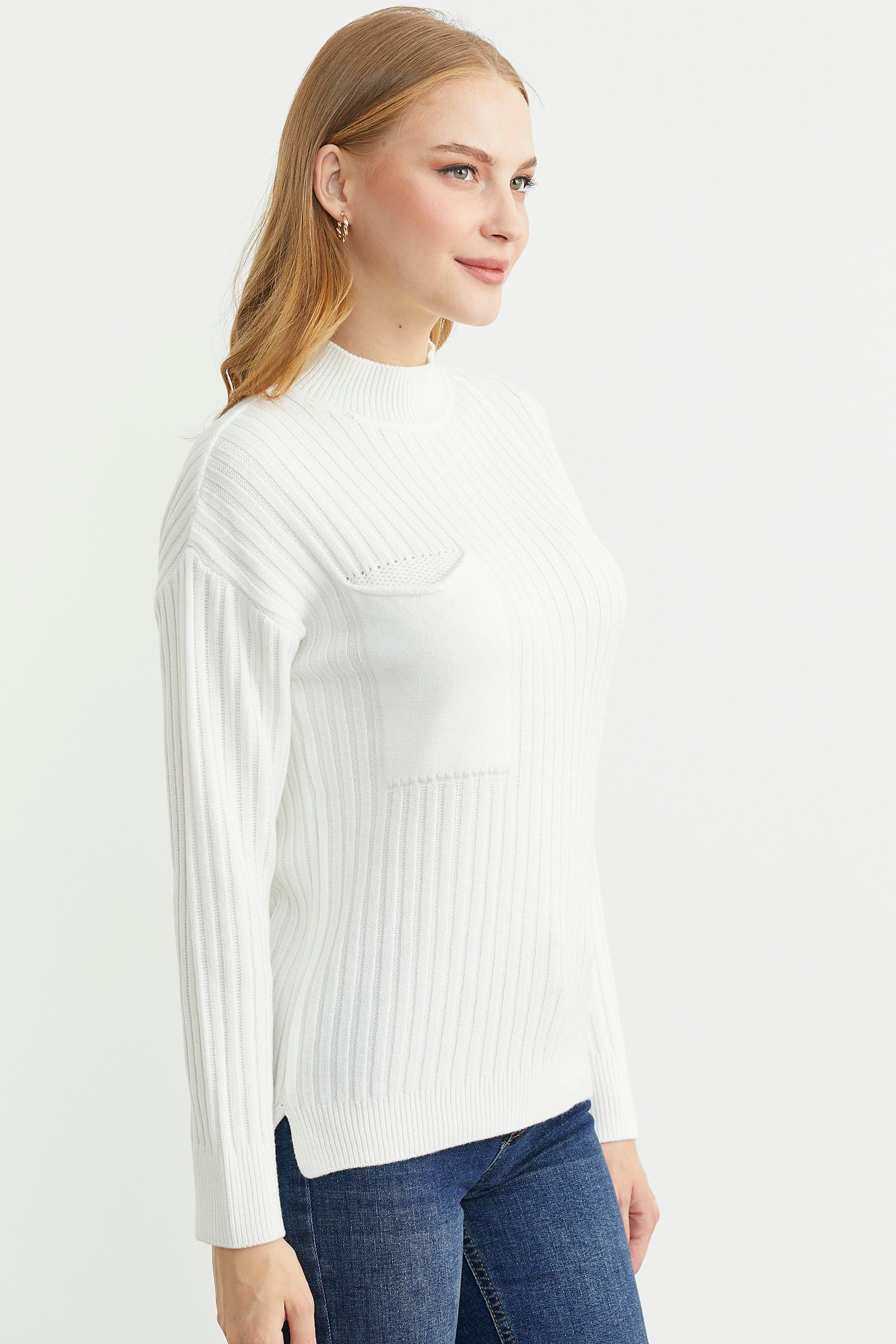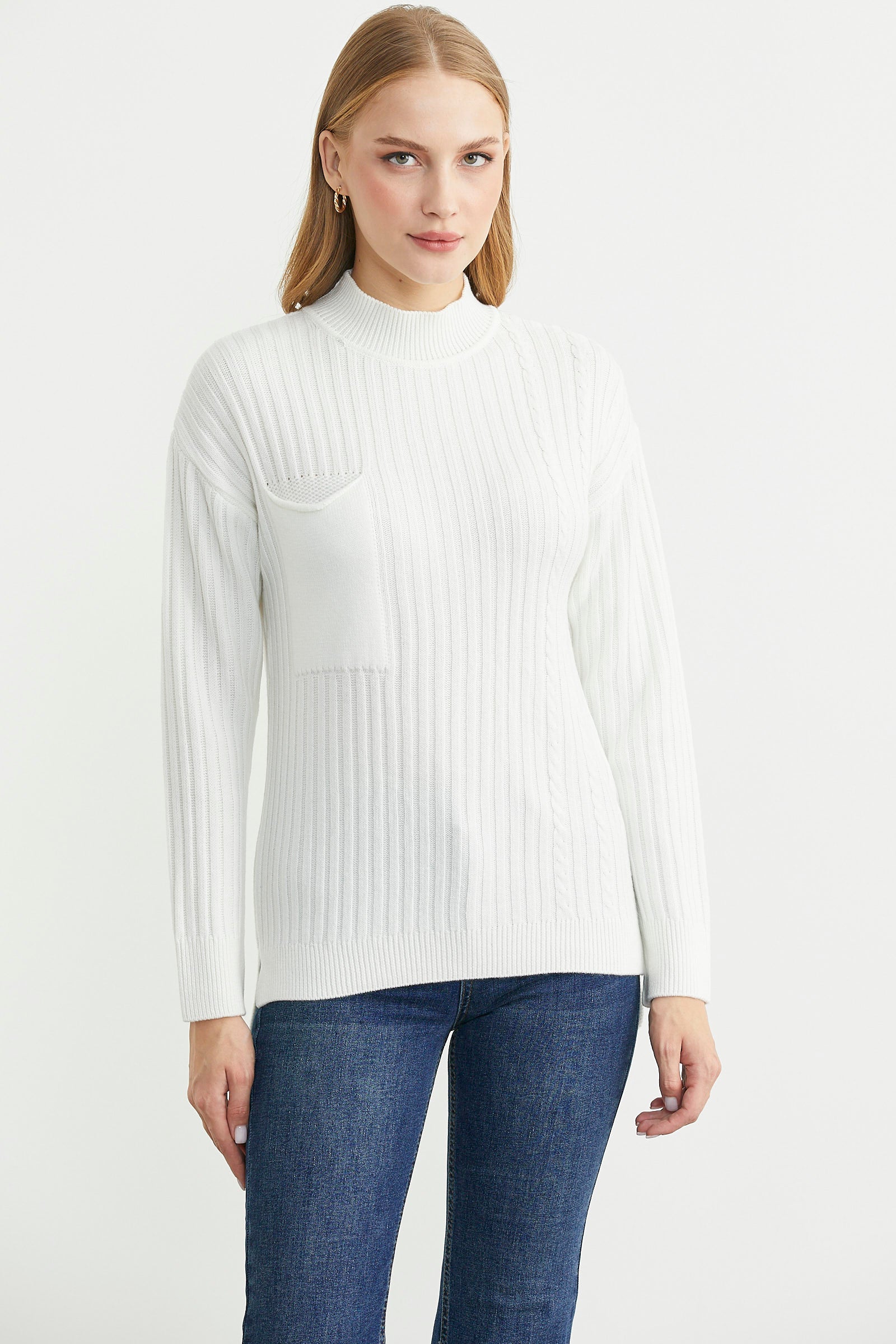 Dik Yaka Cep Detaylı Triko Kazak - Kemik