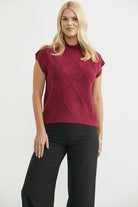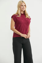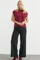Dik Yaka Kolsuz Triko Süveter - Bordo