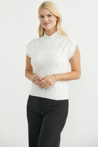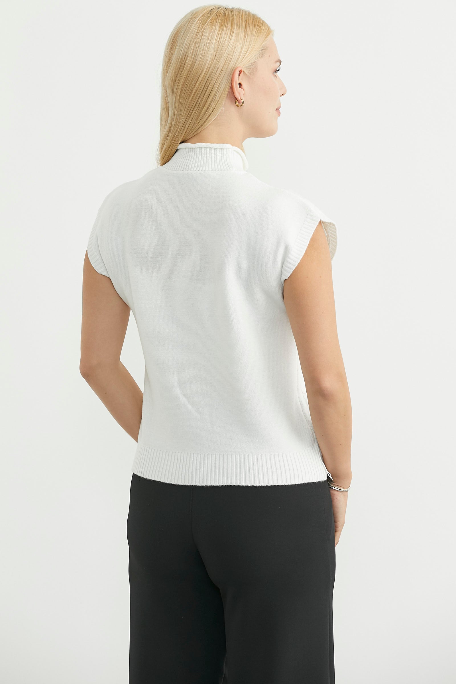 Dik Yaka Kolsuz Triko Süveter - Kemik