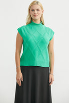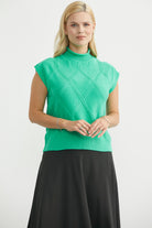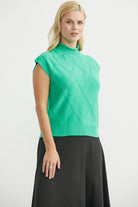 Dik Yaka Kolsuz Triko Süveter - Yeşil