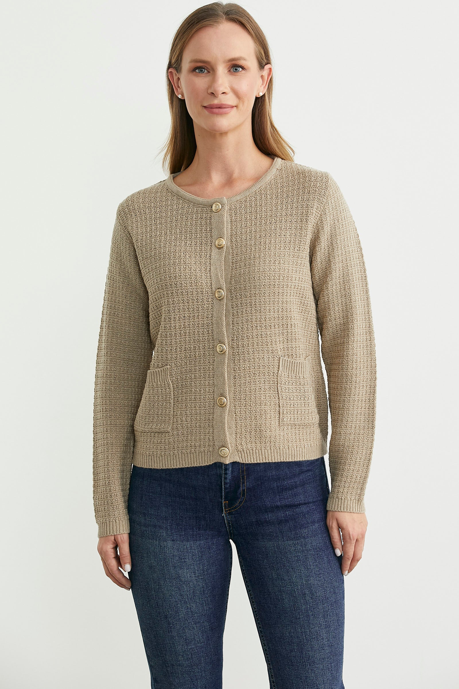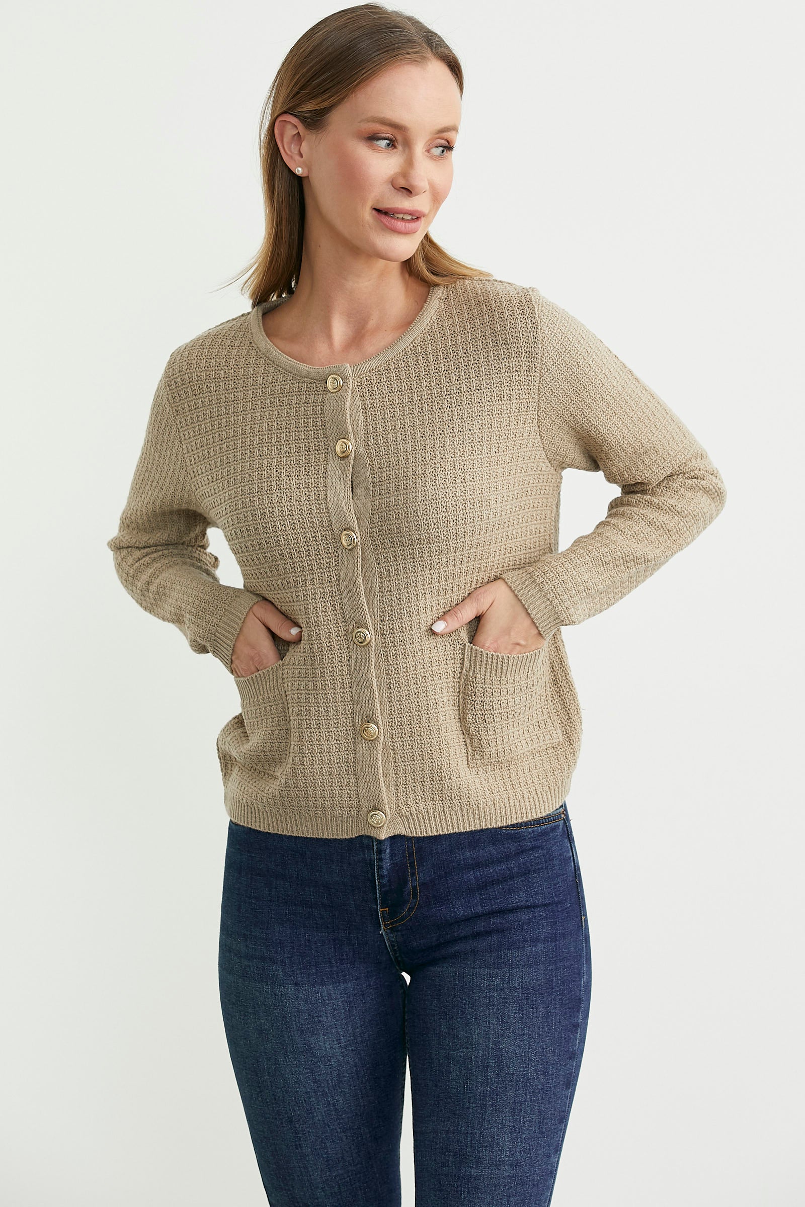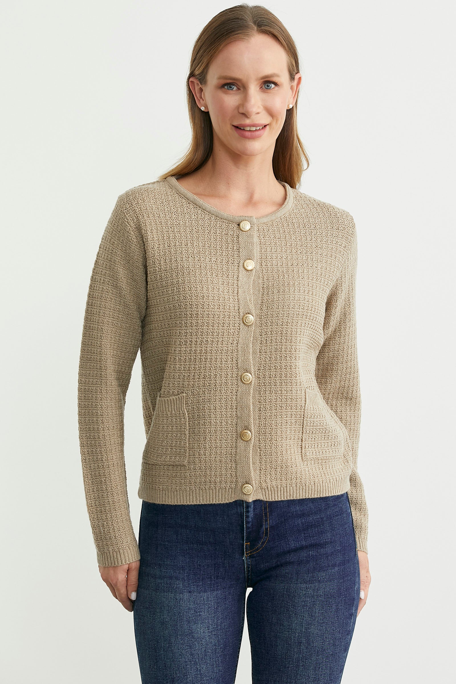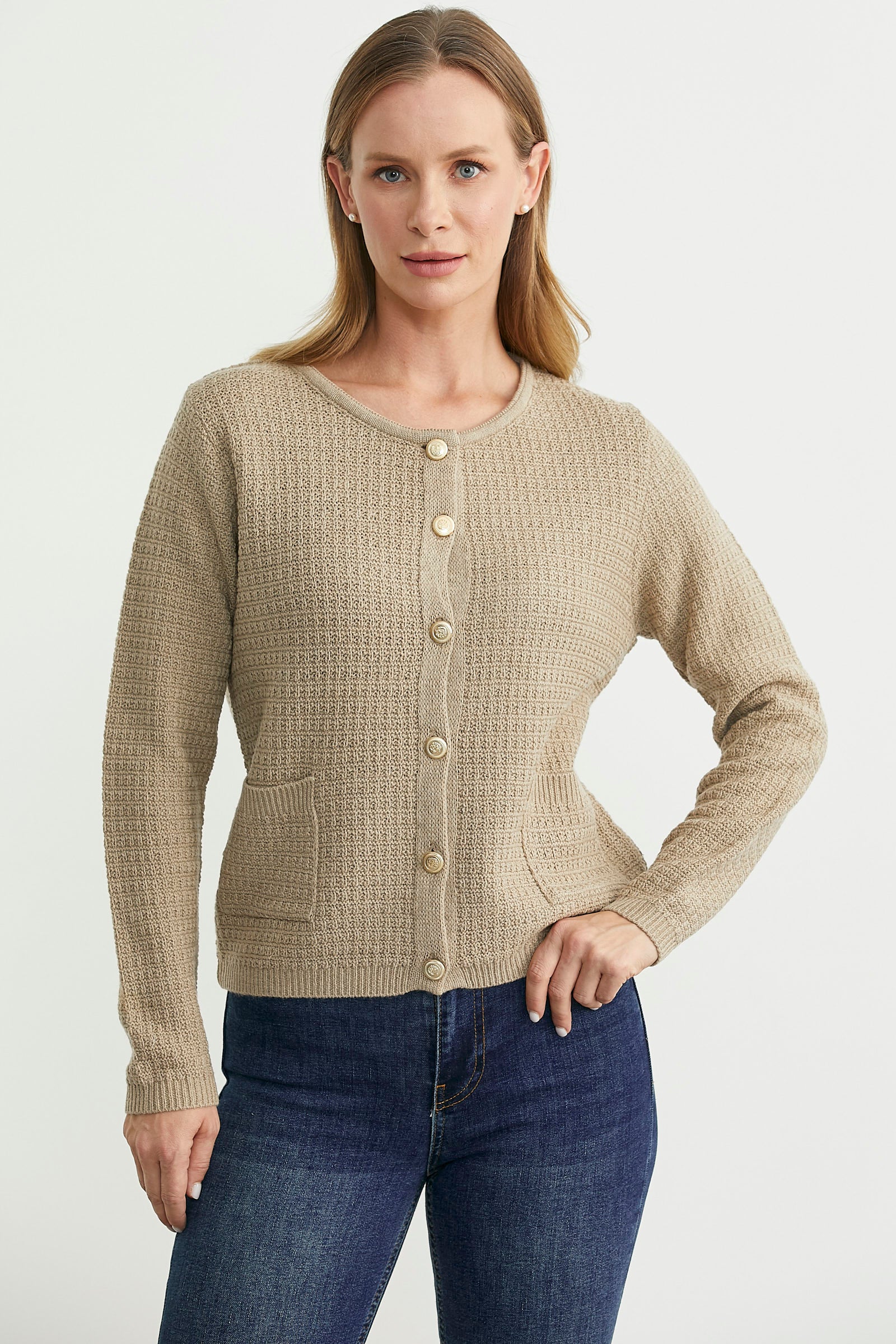 Dore Düğme Detaylı Yünlü Triko Hıırka - Bej