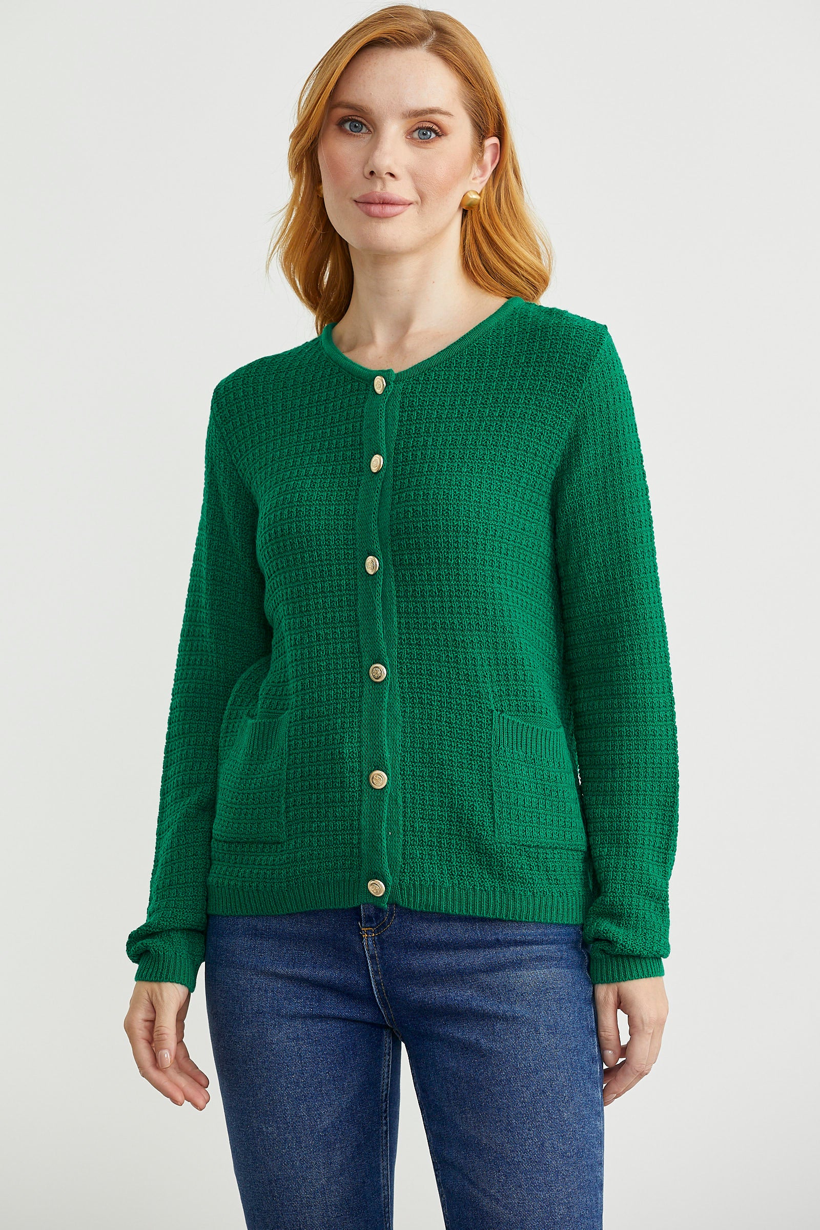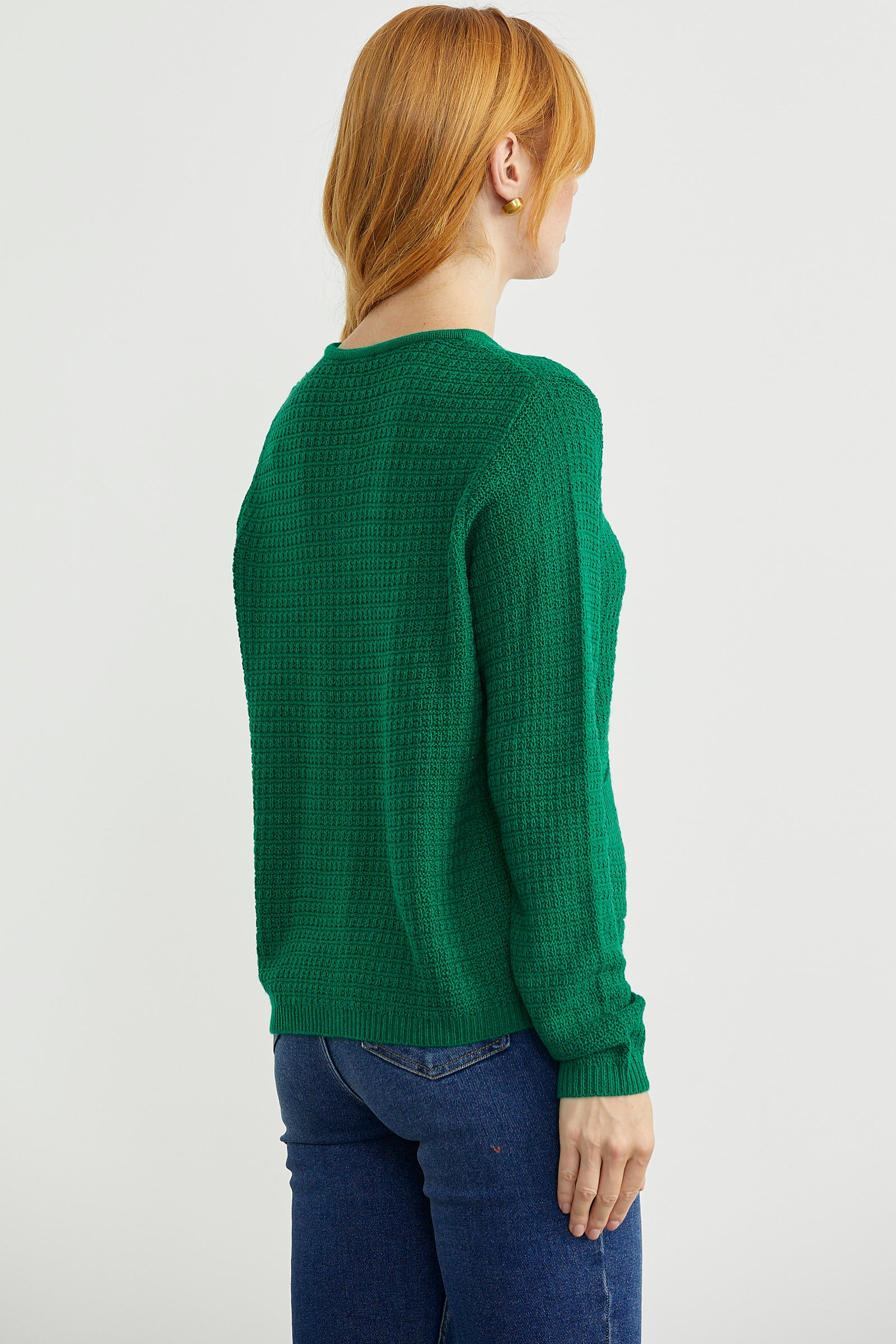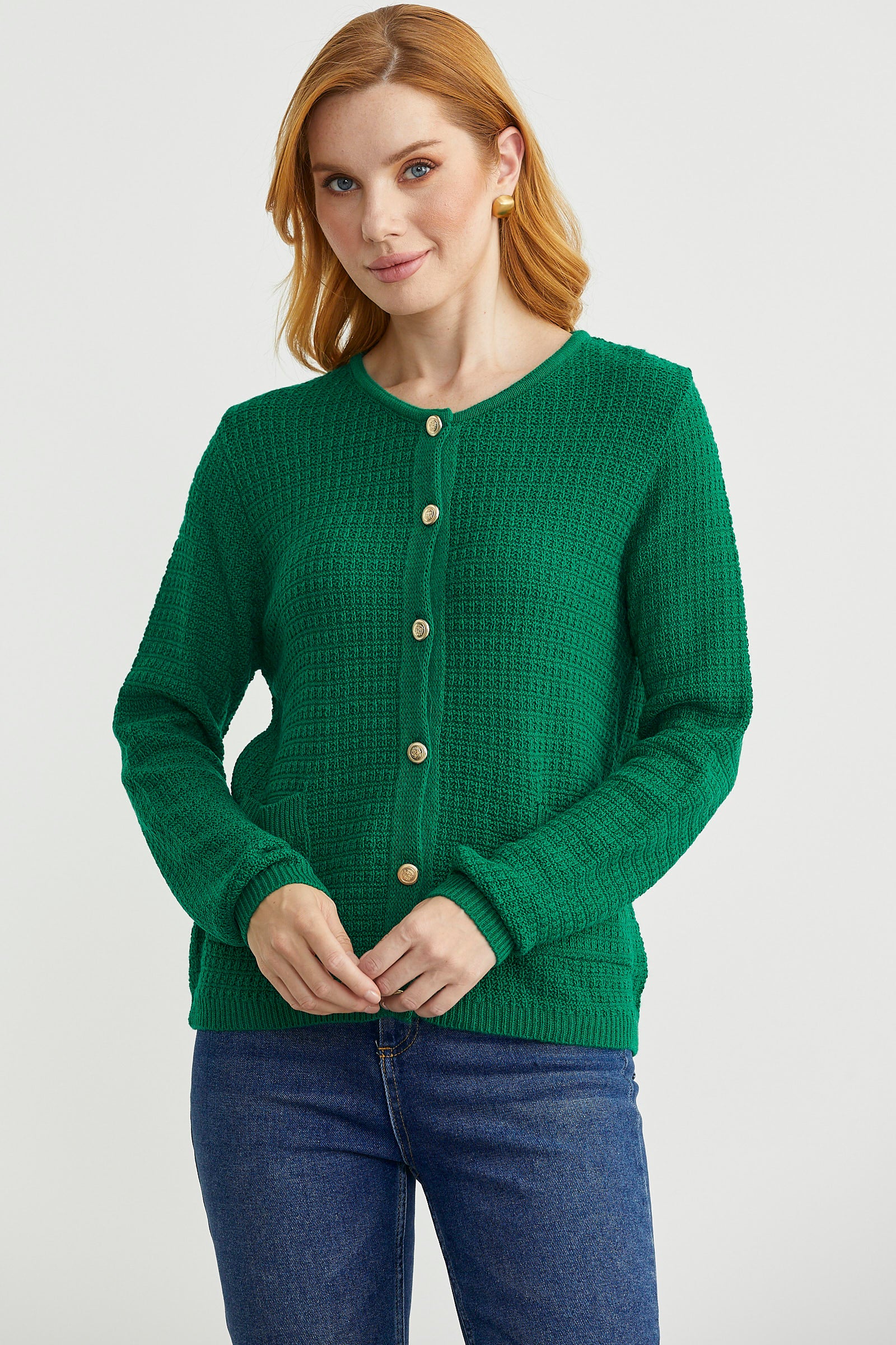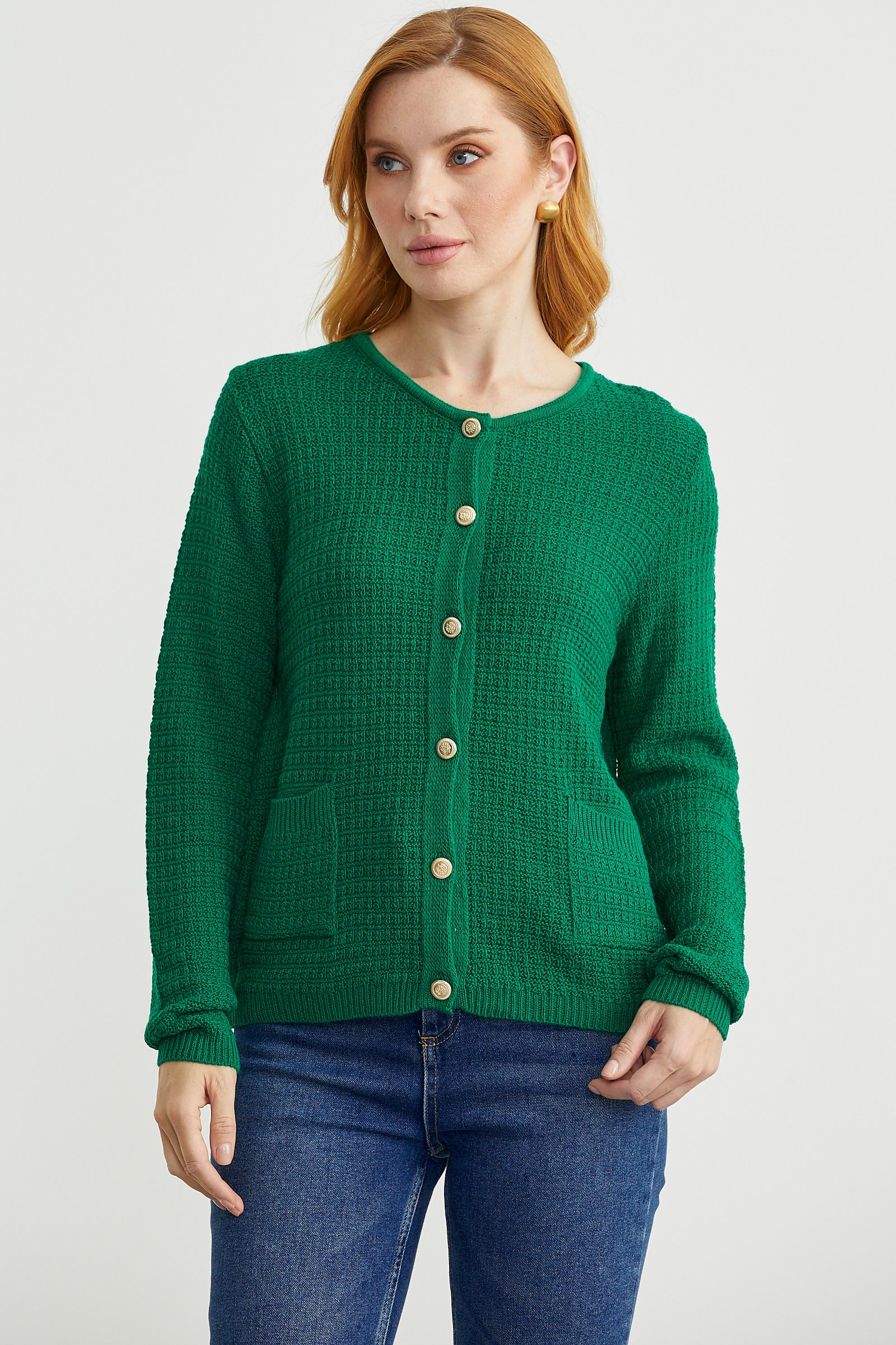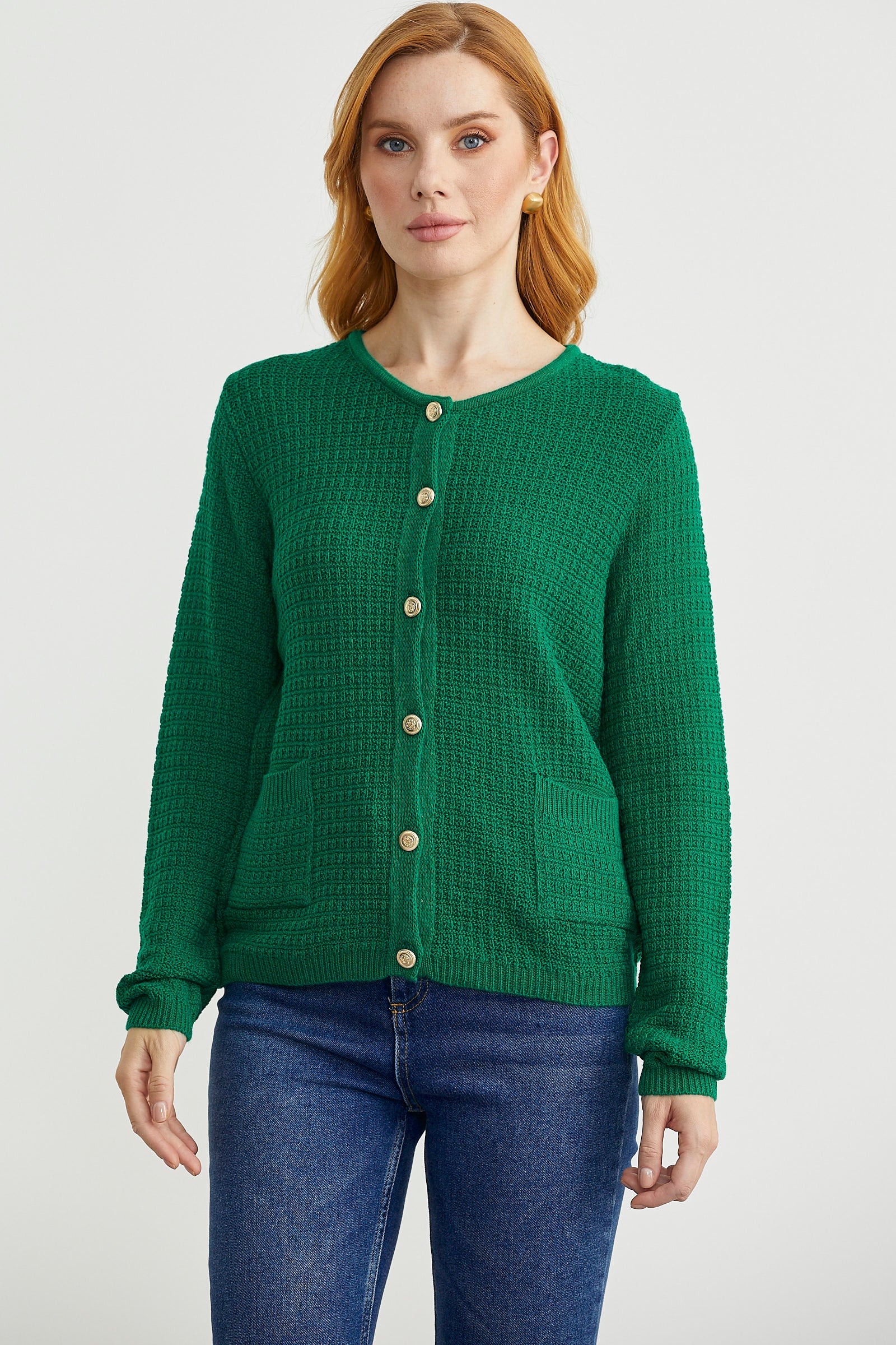 Dore Düğme Detaylı Yünlü Triko Hıırka - Yeşil