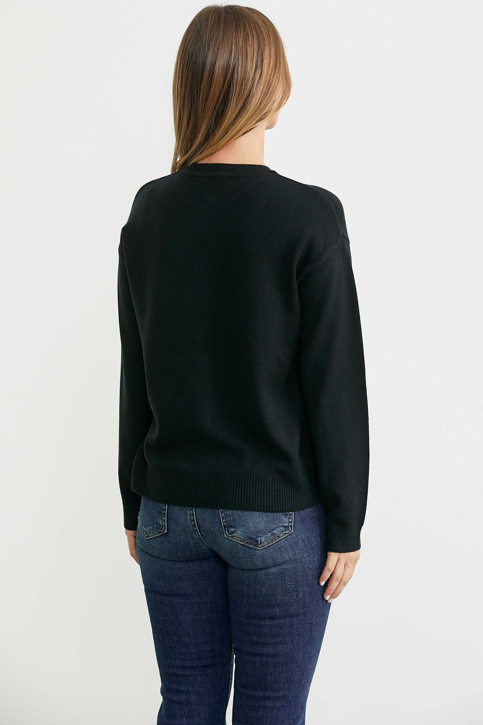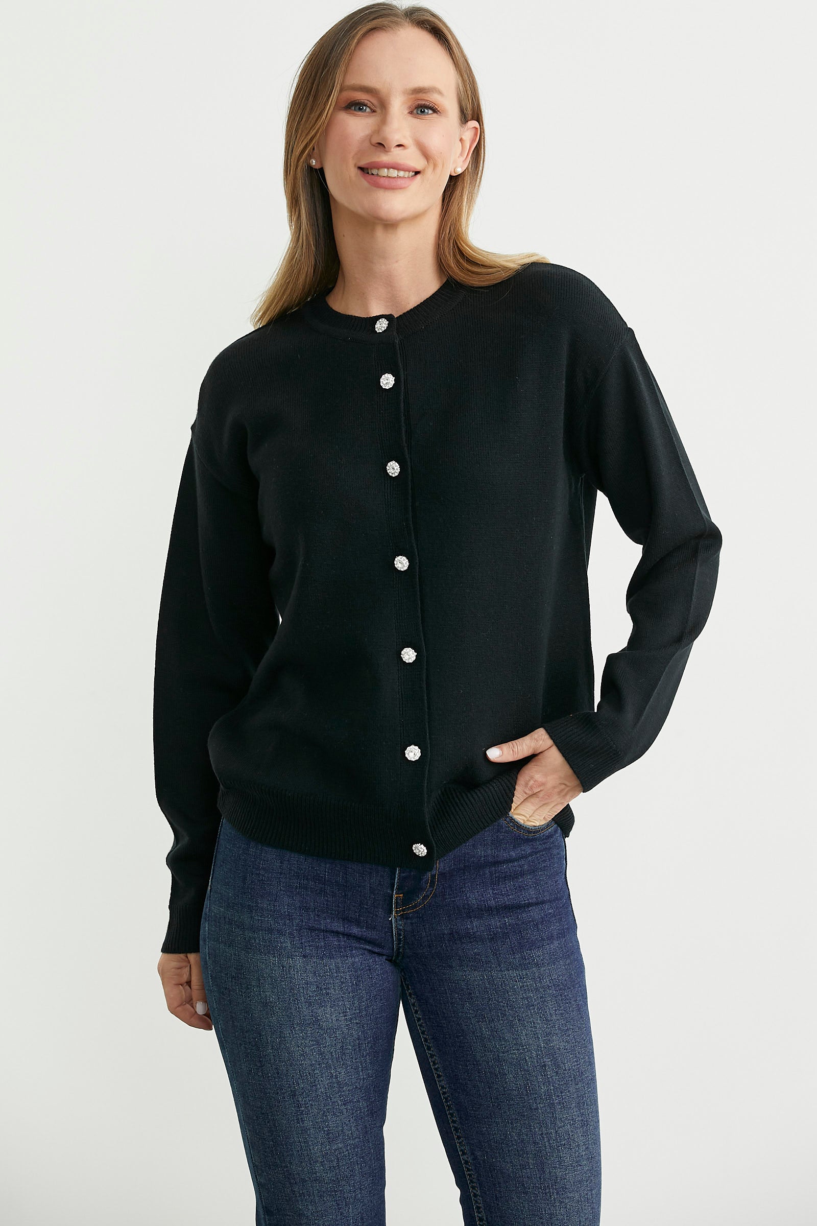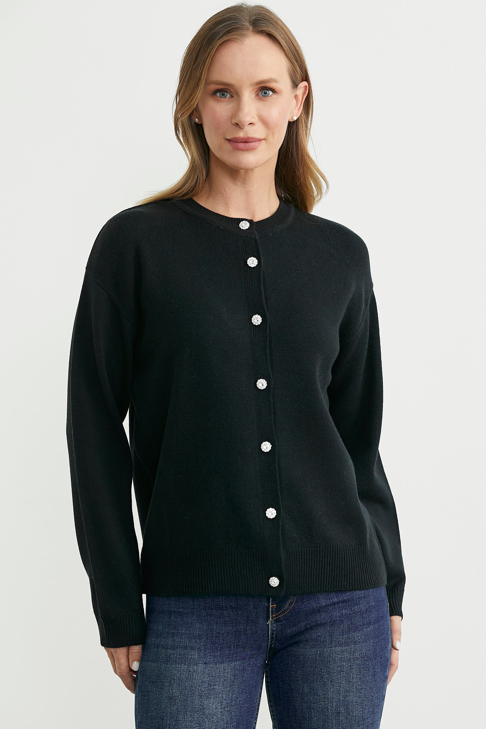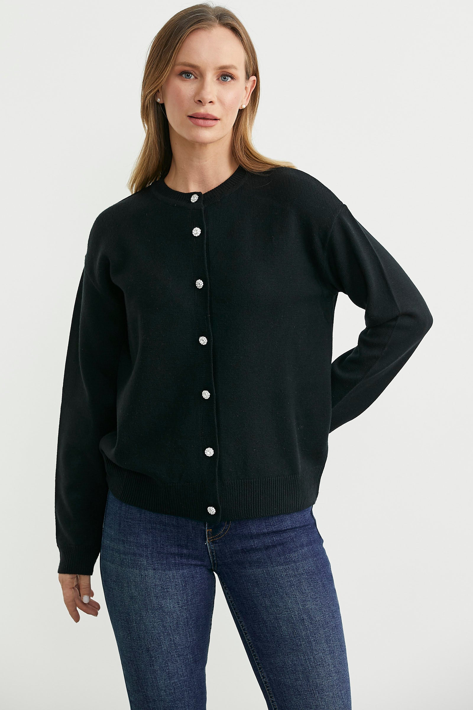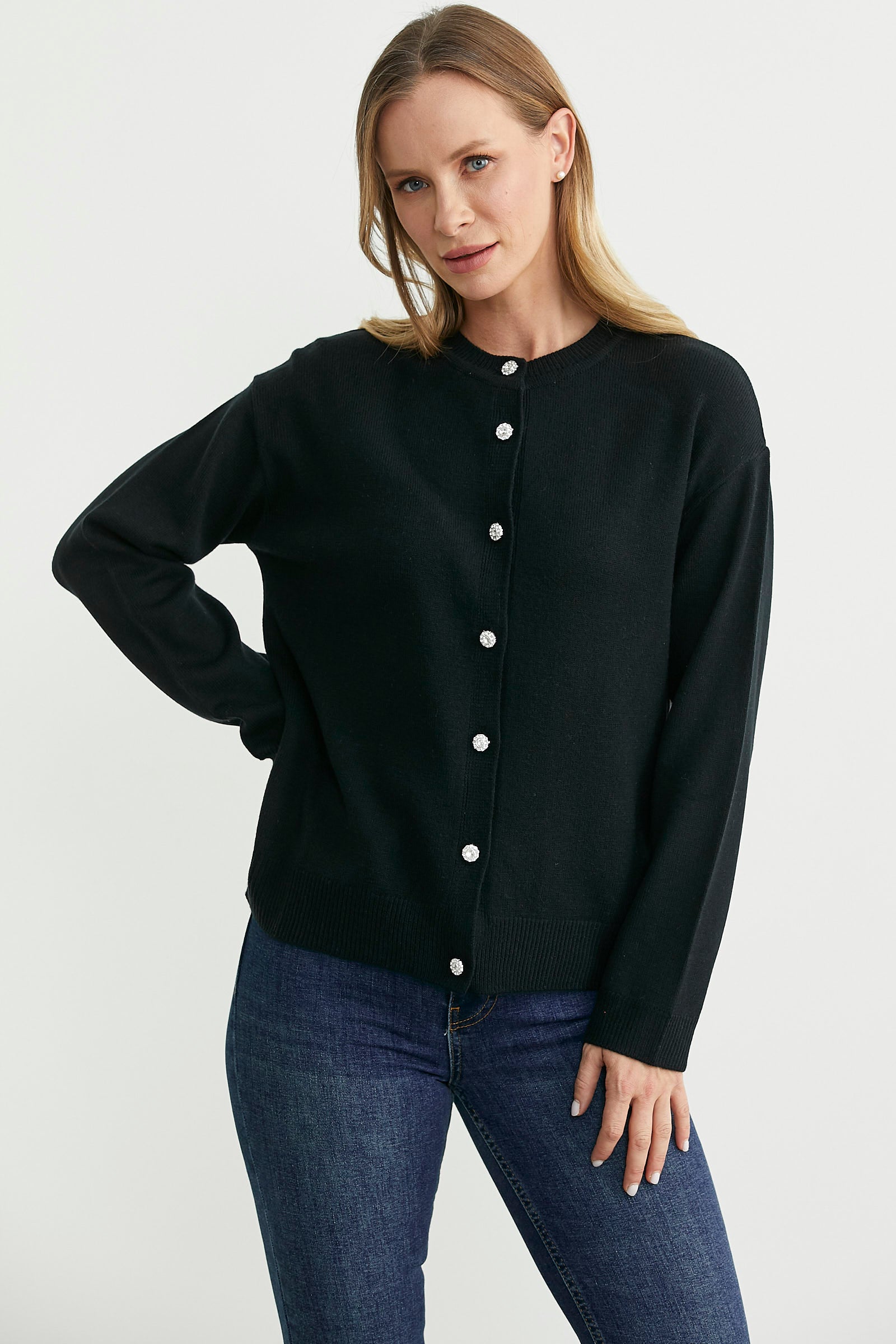 Düğme Detaylı Sıfır Yaka Triko Hırka - Siyah