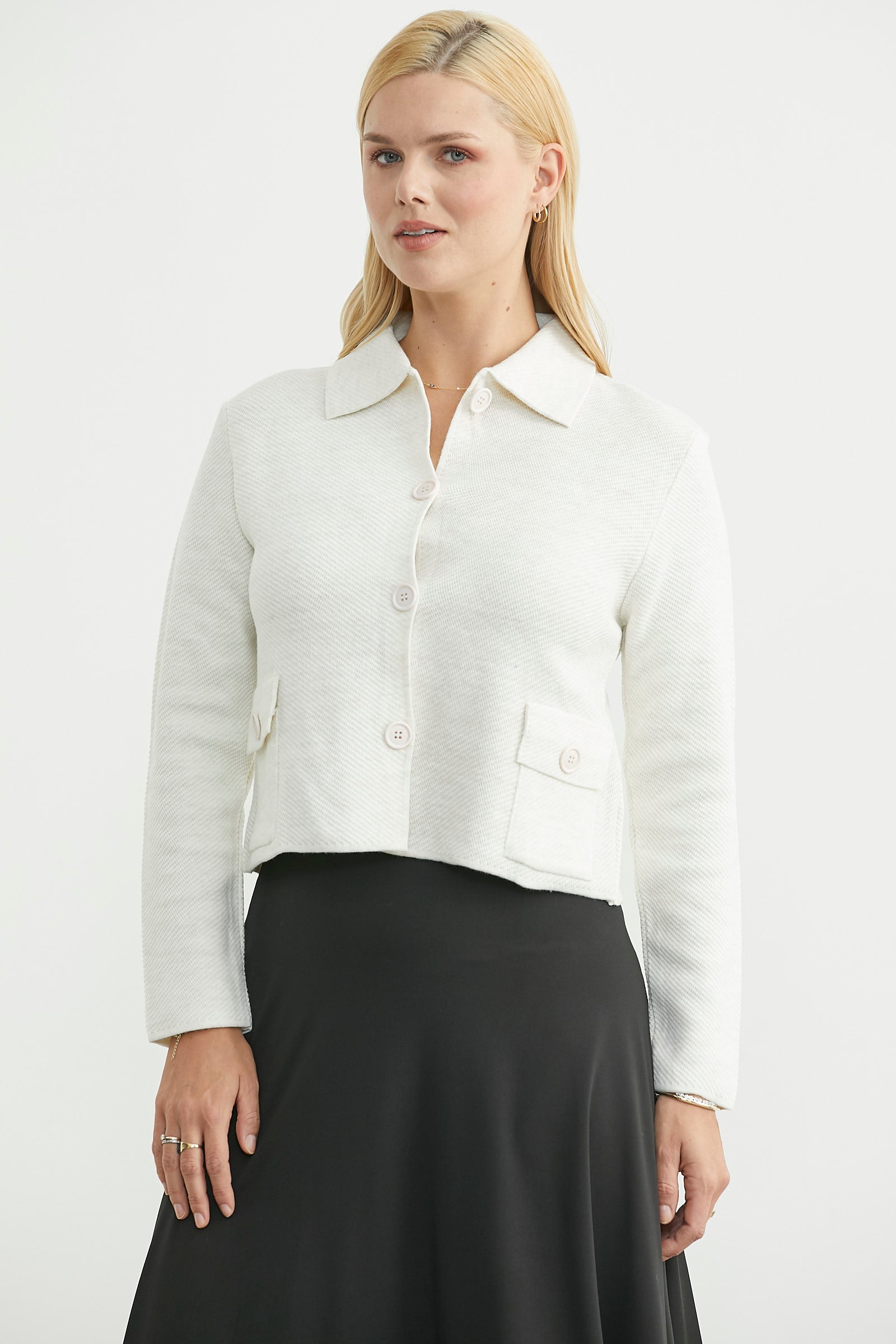 Yakalı, düğme kapamalı, standart kalıp, kısa triko hırka.