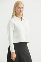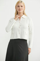 Düğmeli Cep Detaylı Triko Ceket - Kemik