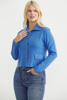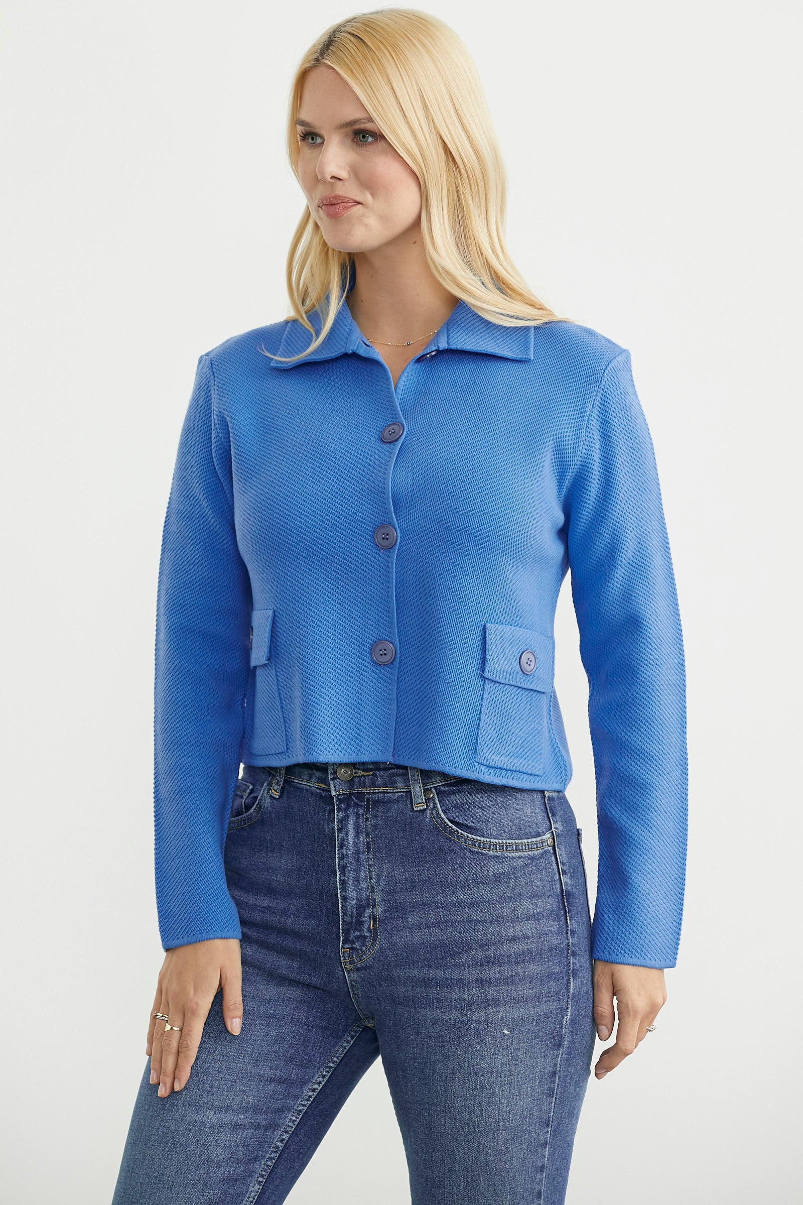 Düğmeli Cep Detaylı Triko Ceket - Mavi