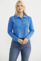 Yakalı, düğme kapamalı, standart kalıp, kısa triko hırka.