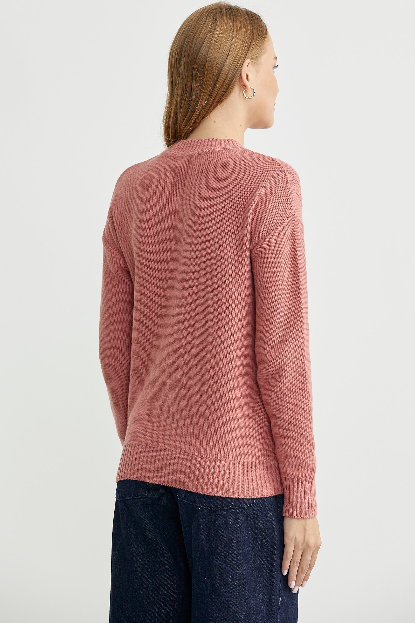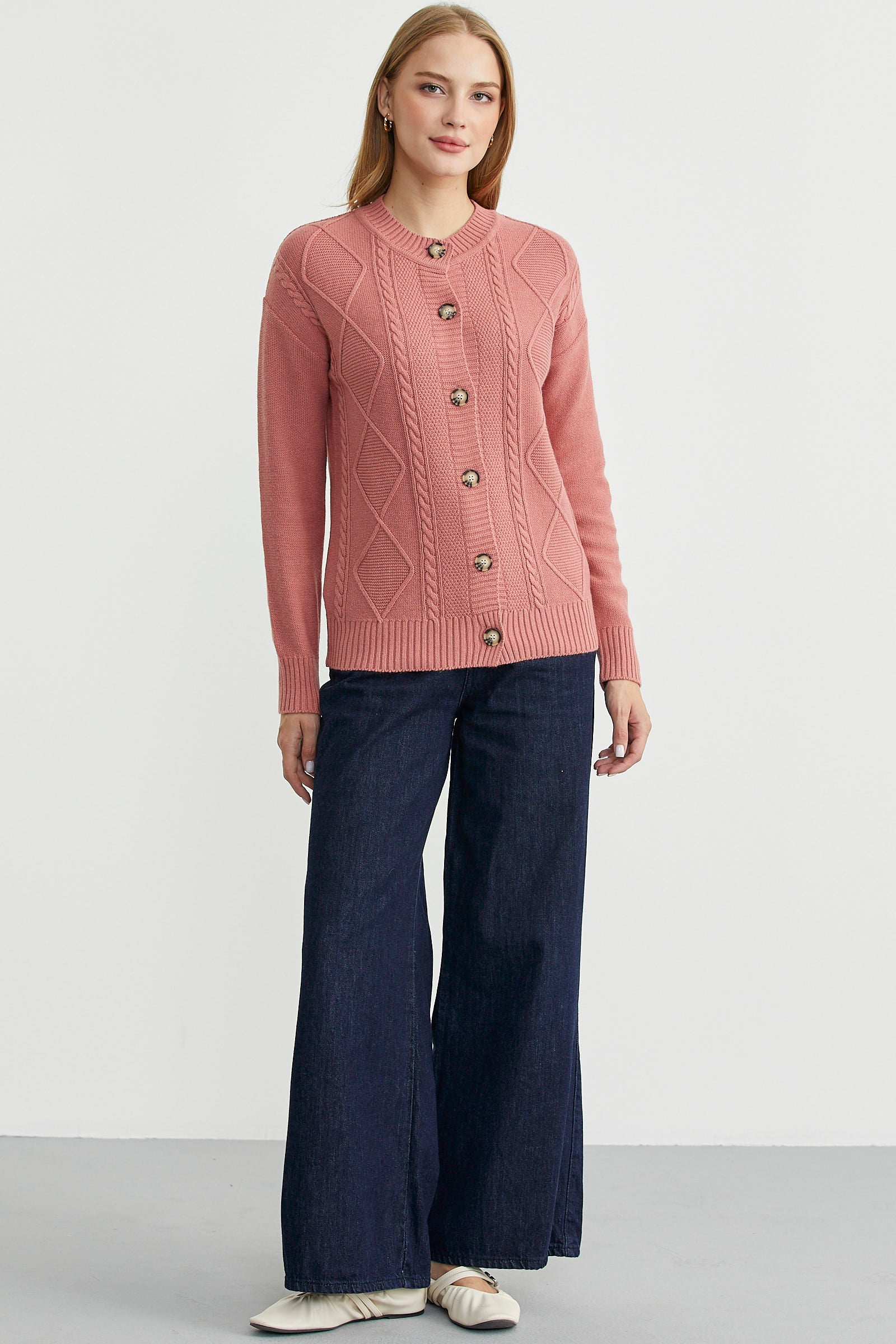 Düğmeli Oversize Angora Triko Hırka - Gül