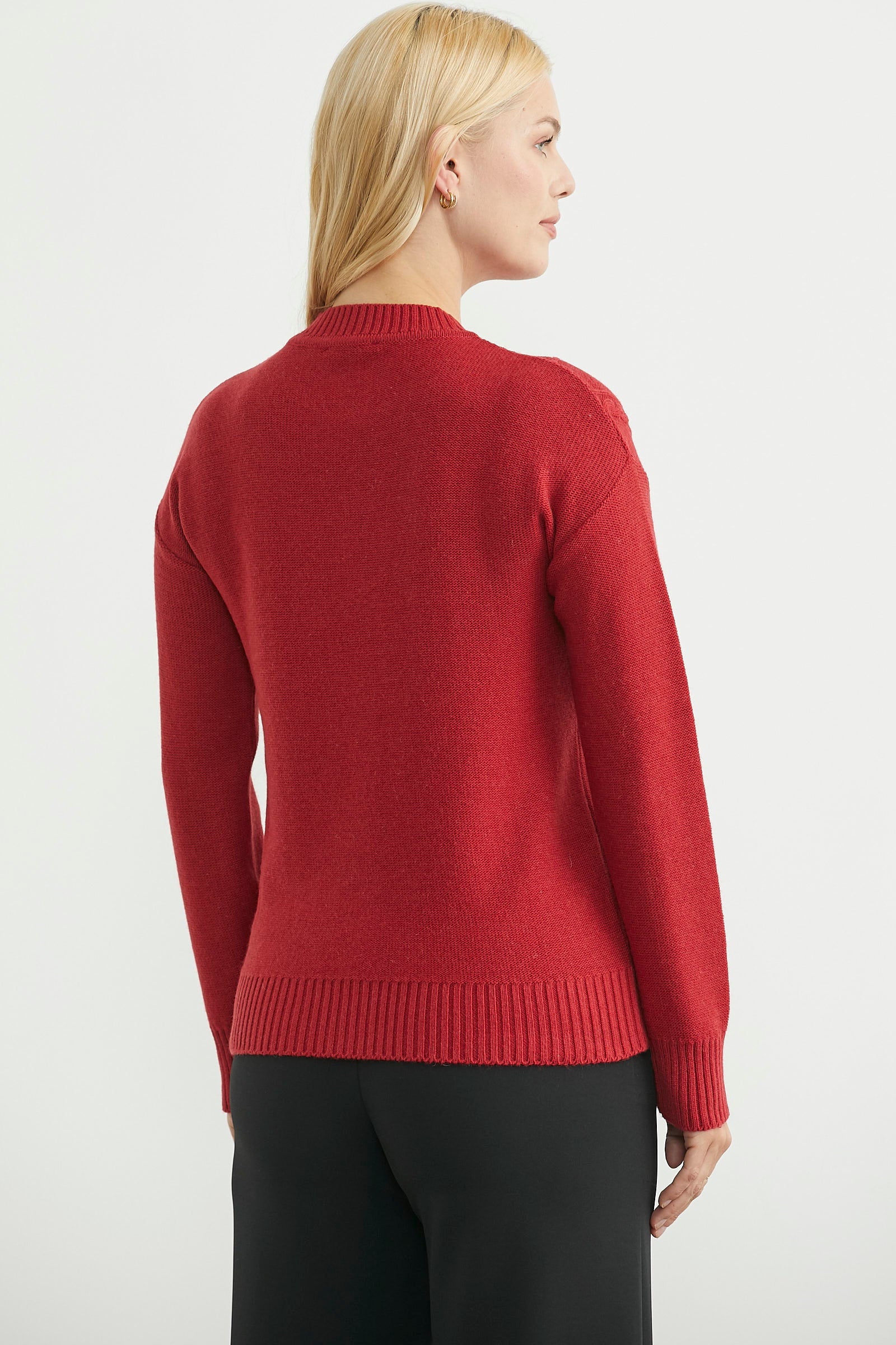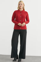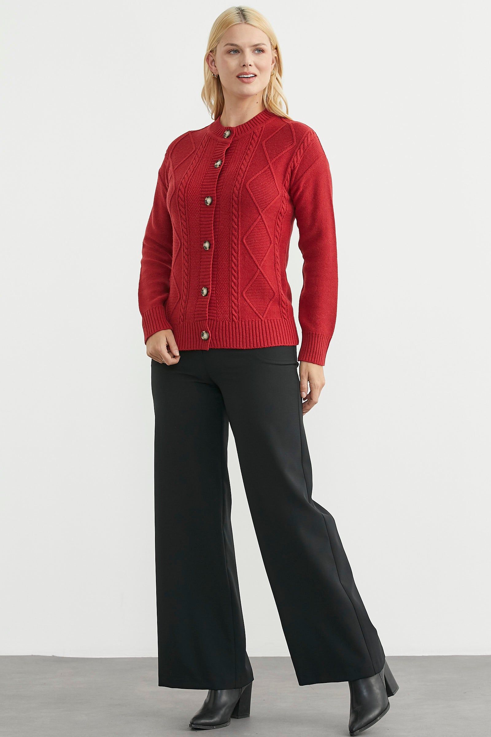 Düğmeli Oversize Angora Triko Hırka - Kırmızı