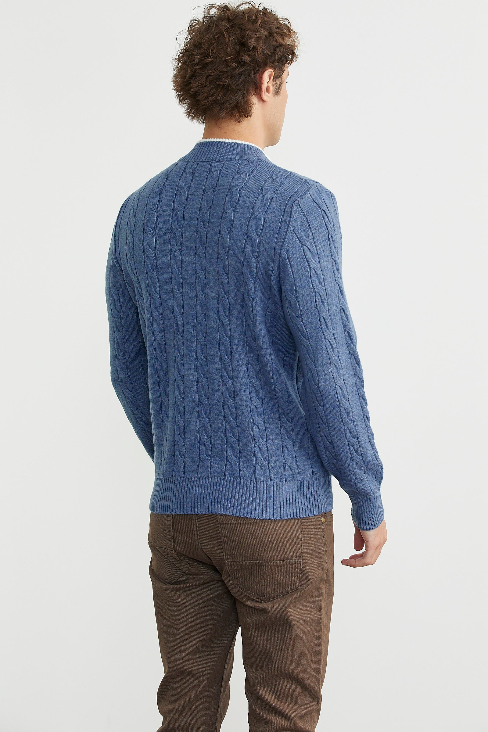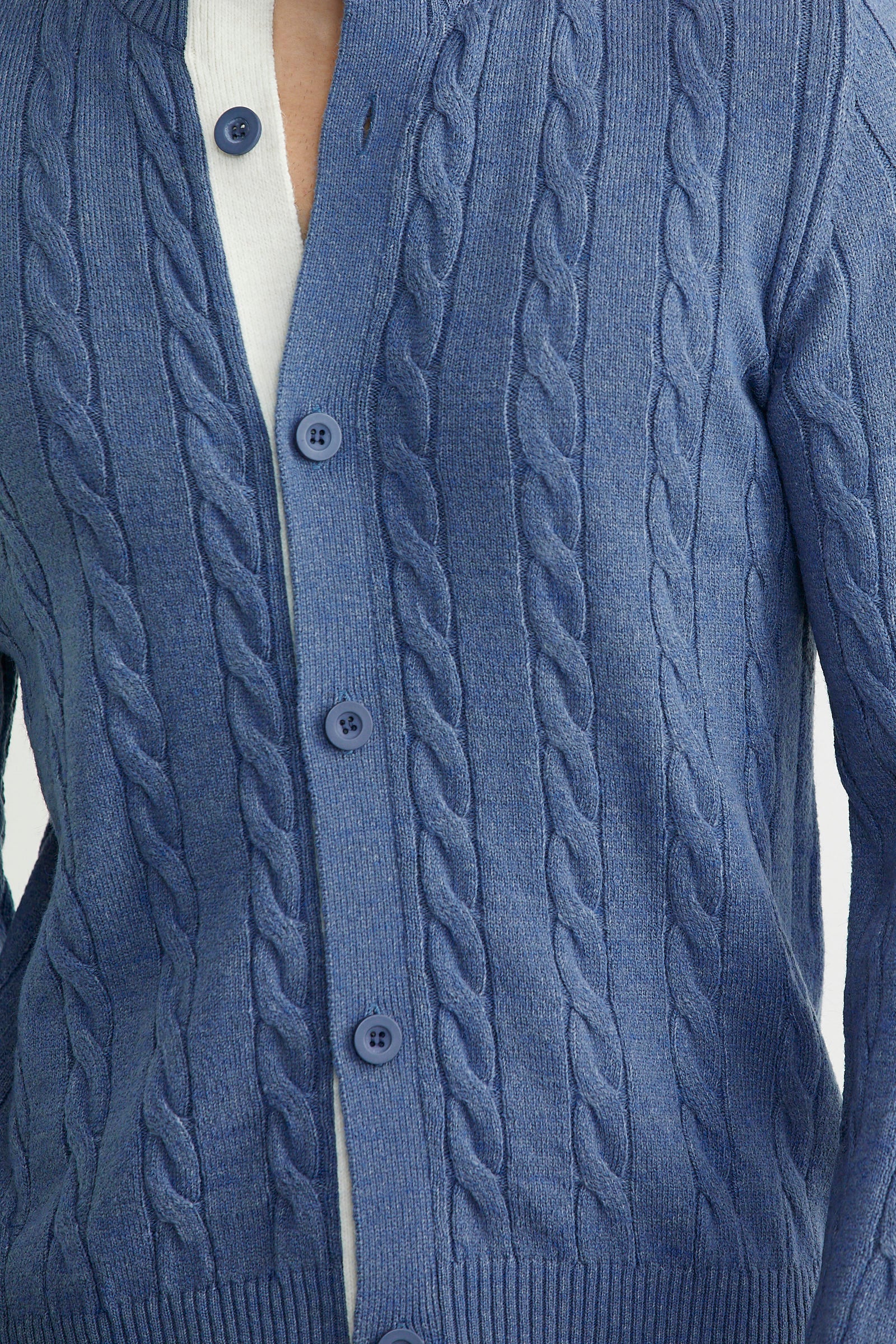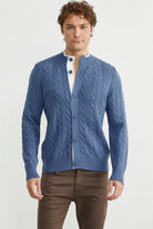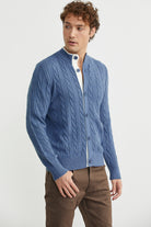 Düğmeli Saç Örgü Triko Hırka - Indigo