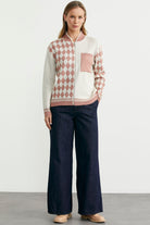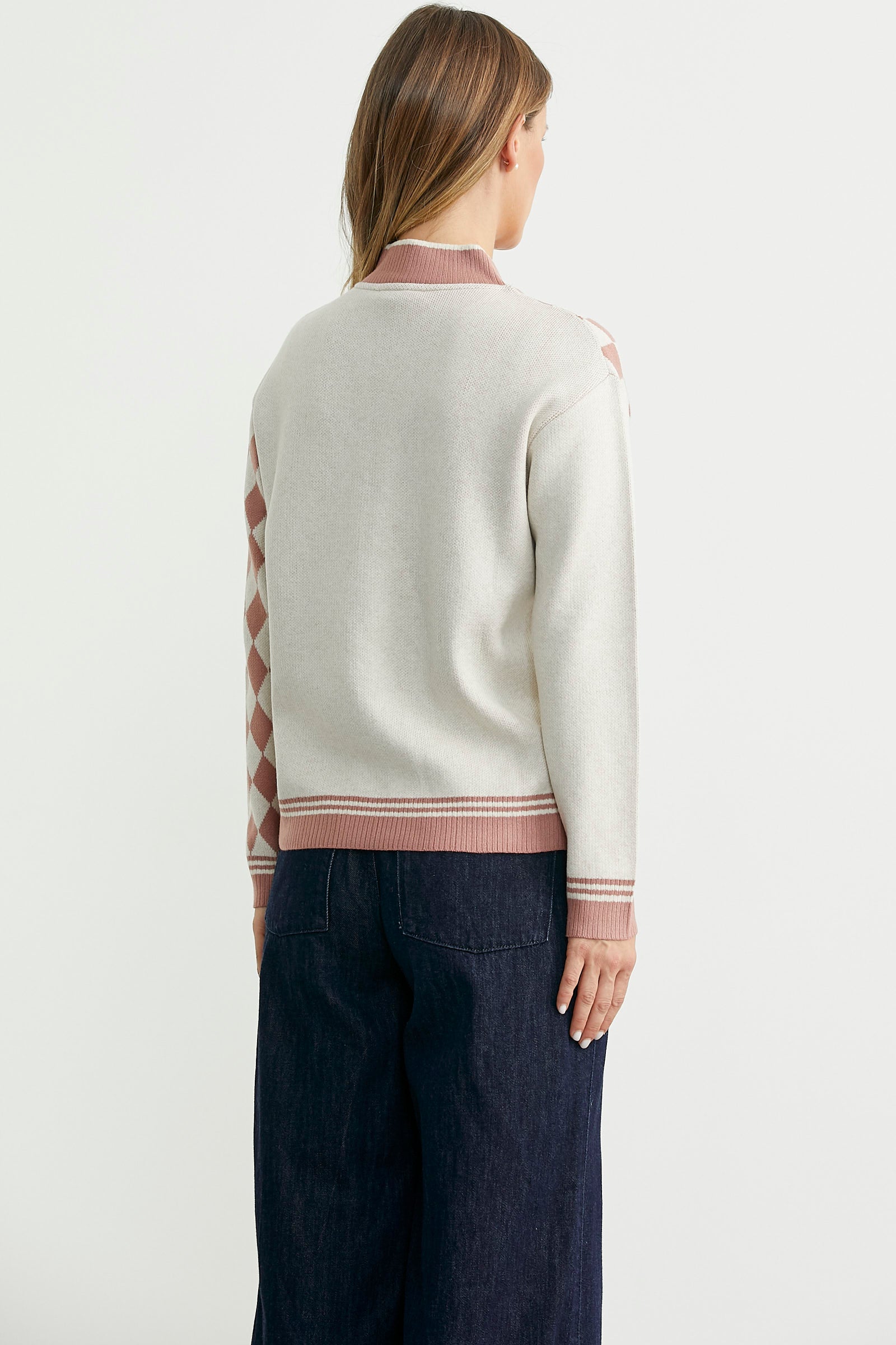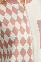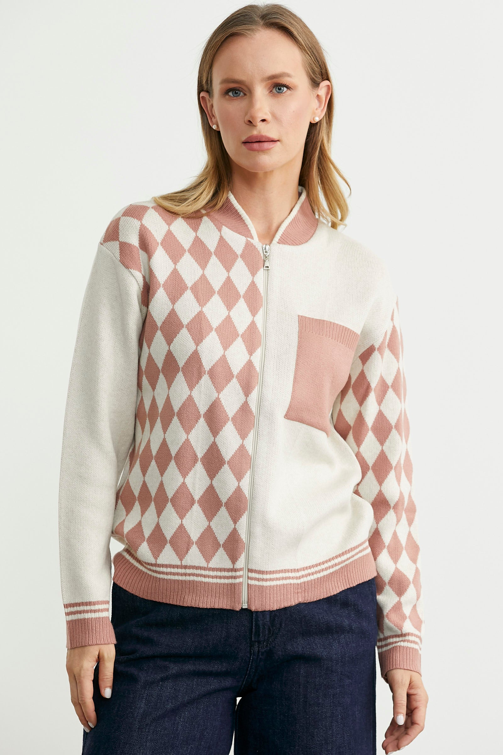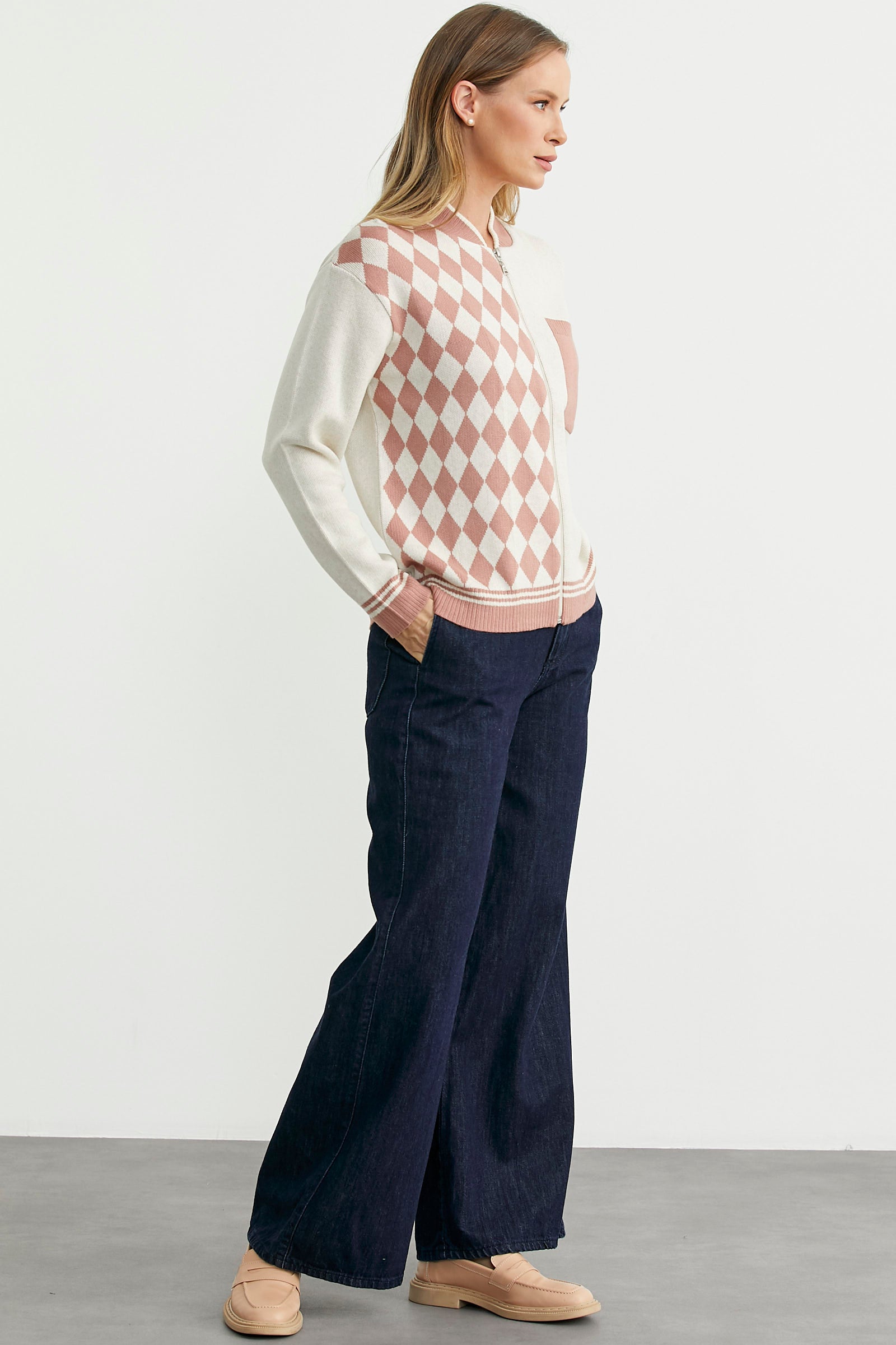 Fermuarlı Baklava Motifli Triko Hırka - Gül