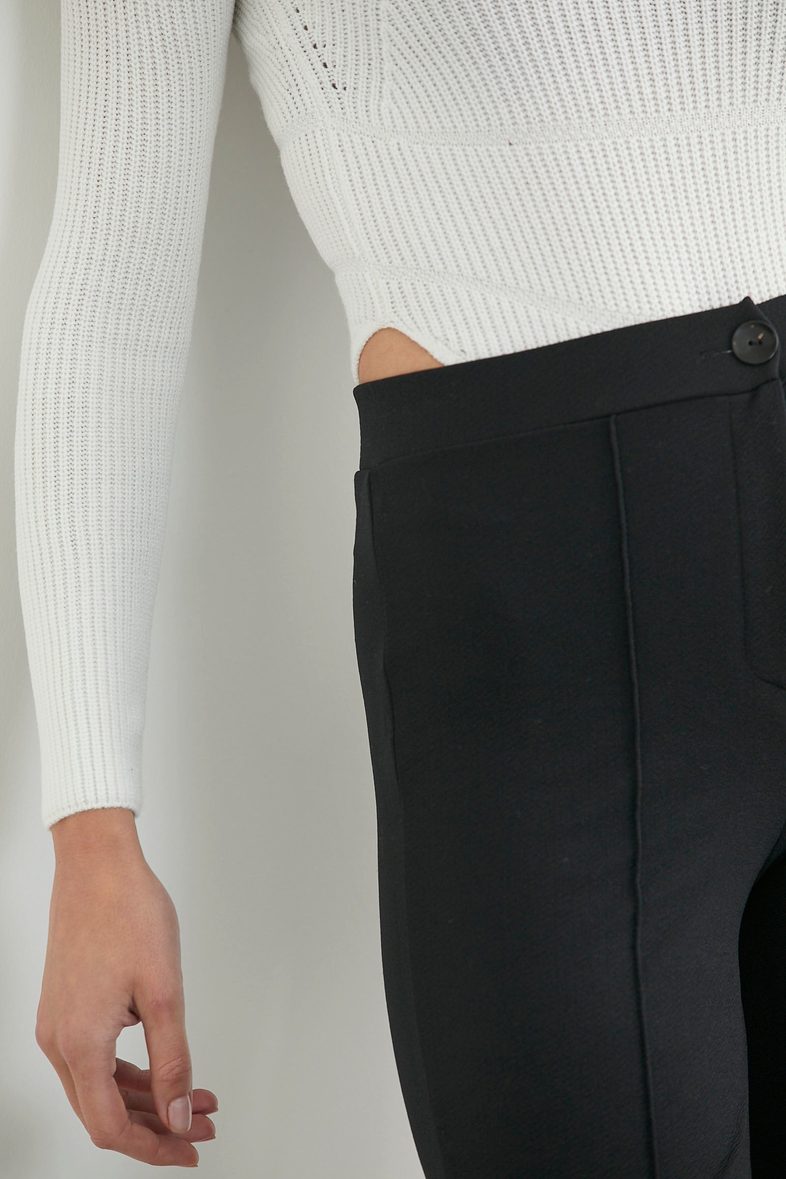 Fitilli Alttan Çıtçıtlı Triko Kazak - Kemik