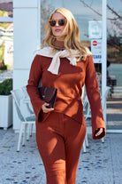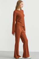 İkili Pantolon Kazak Triko Takım - Kiremit