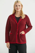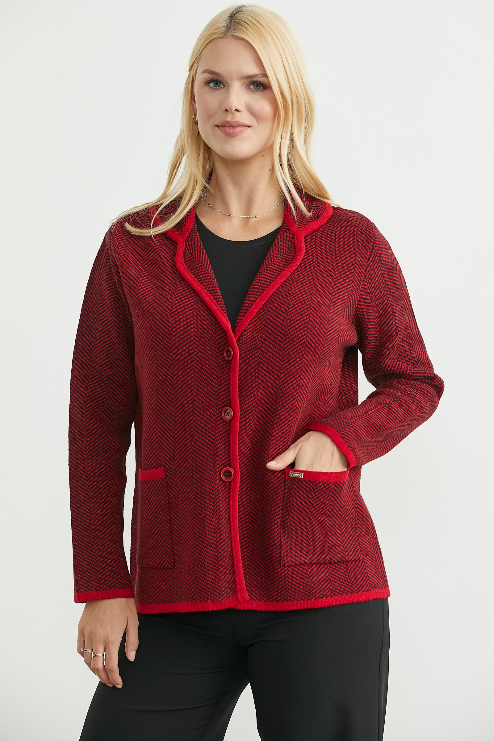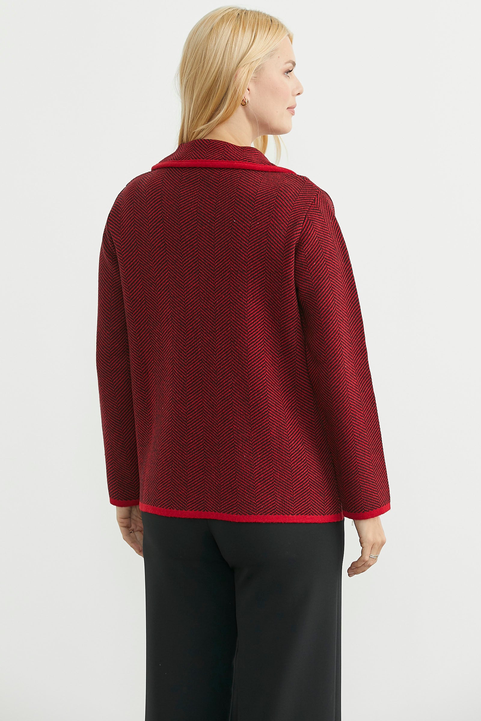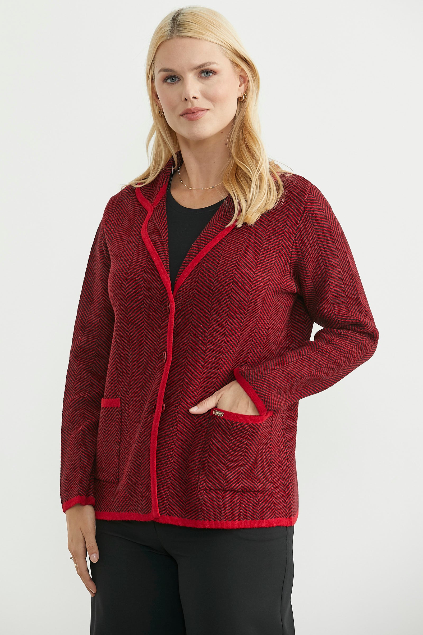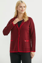 Kazayağı Şal Yaka Yünlü Triko Ceket - Kırmızı