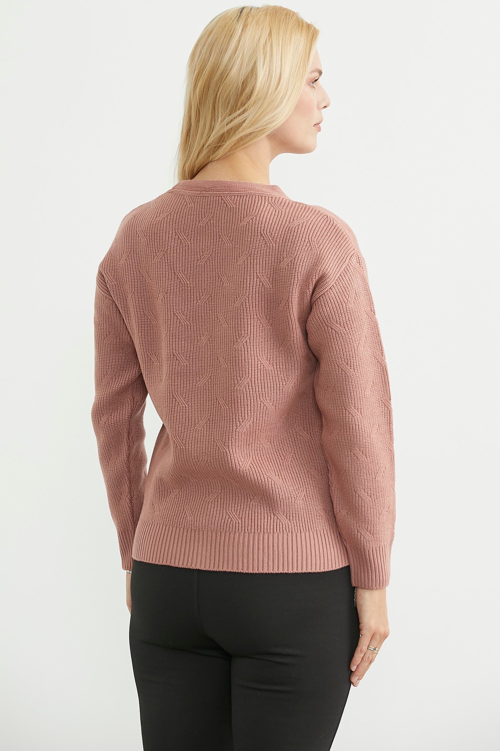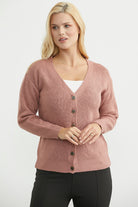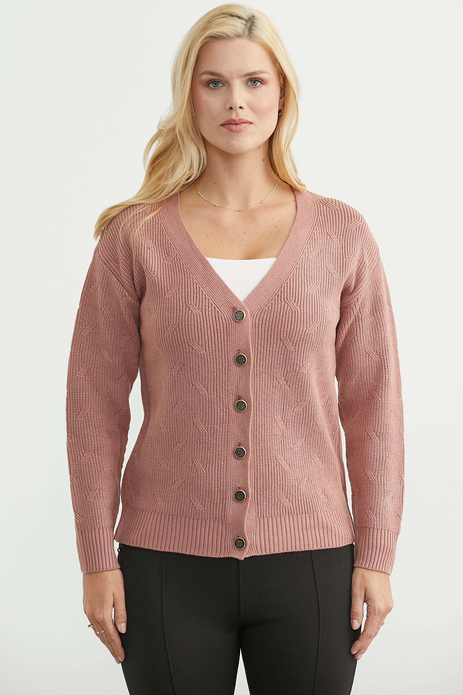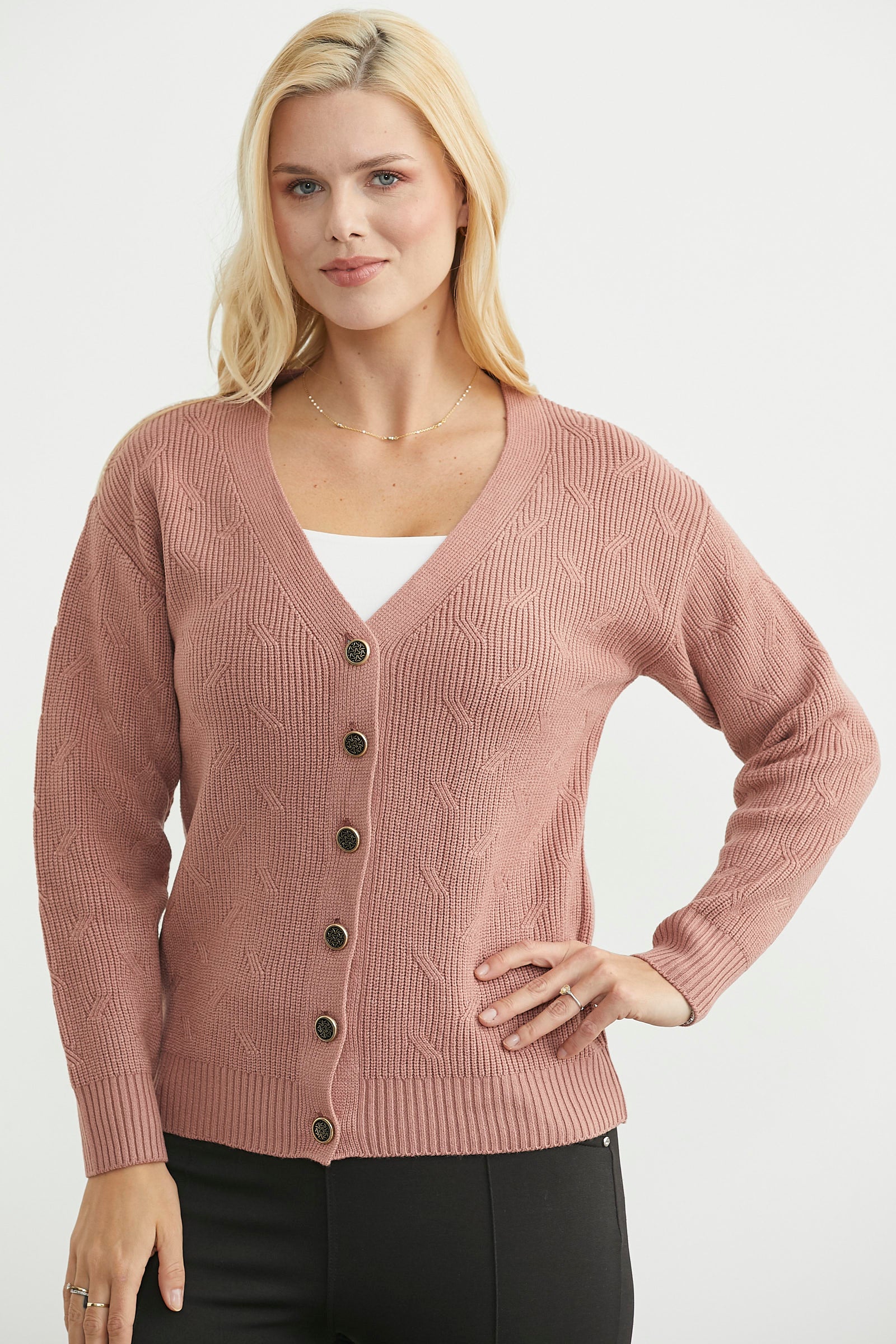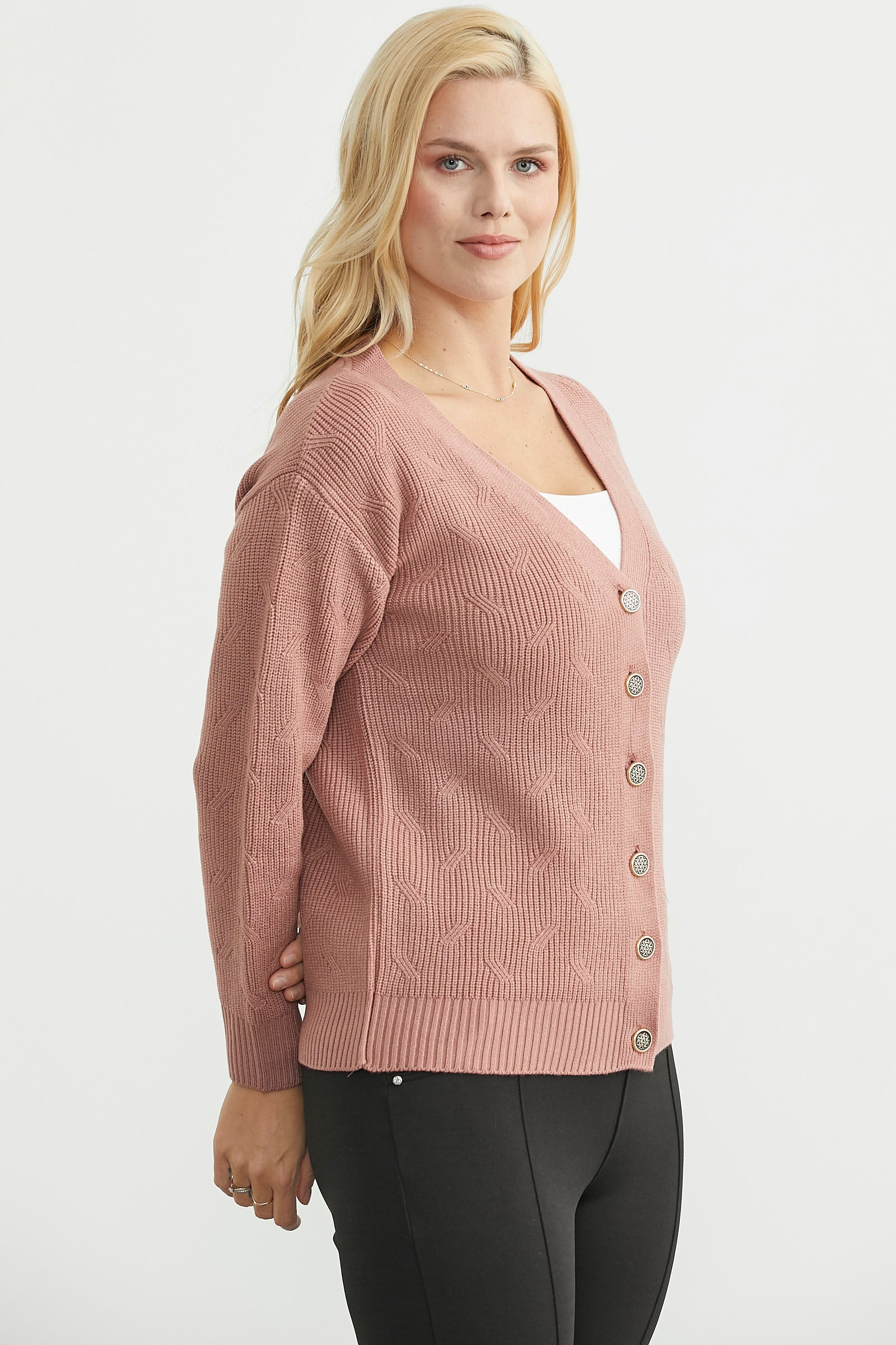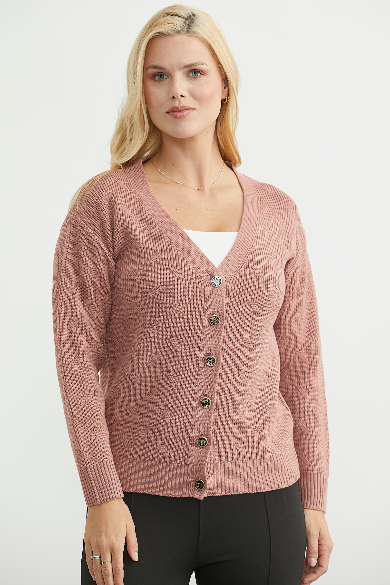 Metal Düğmeli Oversize Triko Hırka - Gül