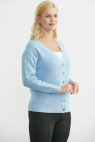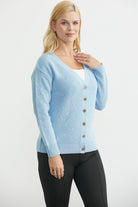 Metal Düğmeli Oversize Triko Hırka - Mavi