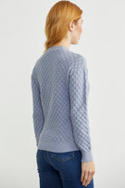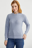 Motifli Sıfır Yaka Triko Kazak - Mavi